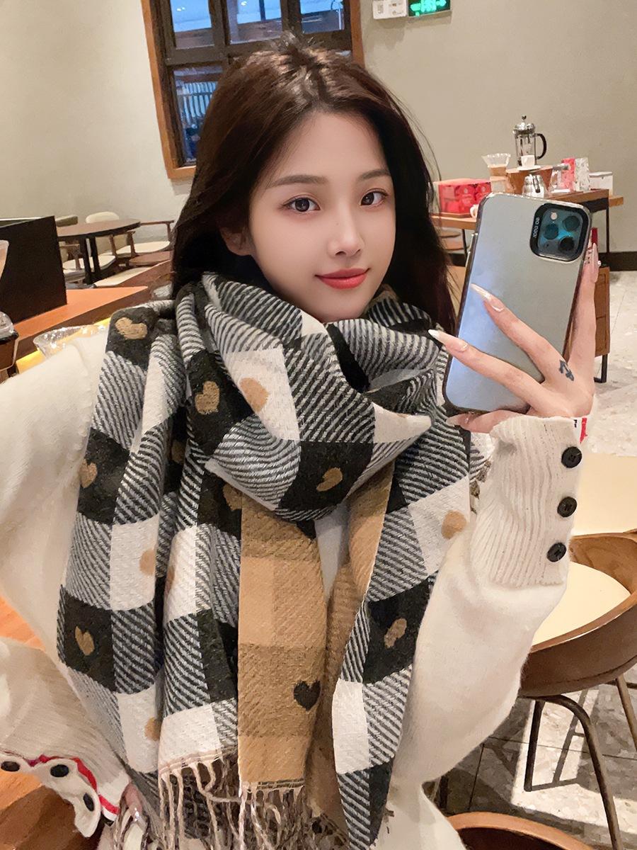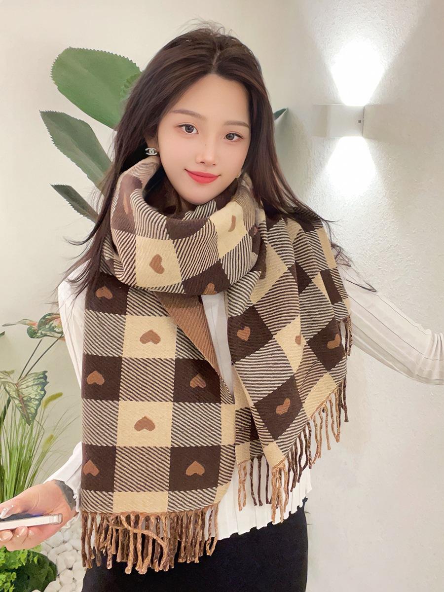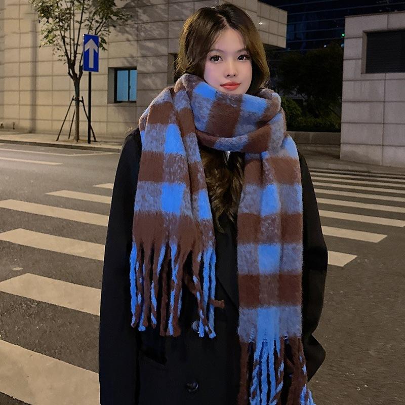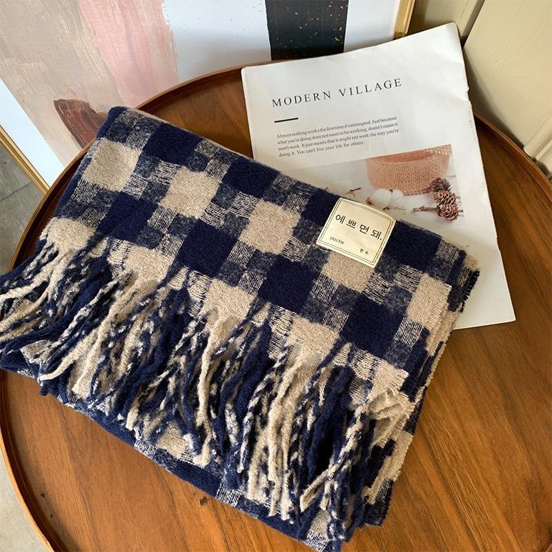 2025 Bufanda Nueva para Mujer Invierno Versión Coreana Más Fácil de Combinar Estudiante Tejida Pata de Gallo Chal Bufanda Gruesa para Mujer Venta al por Mayor