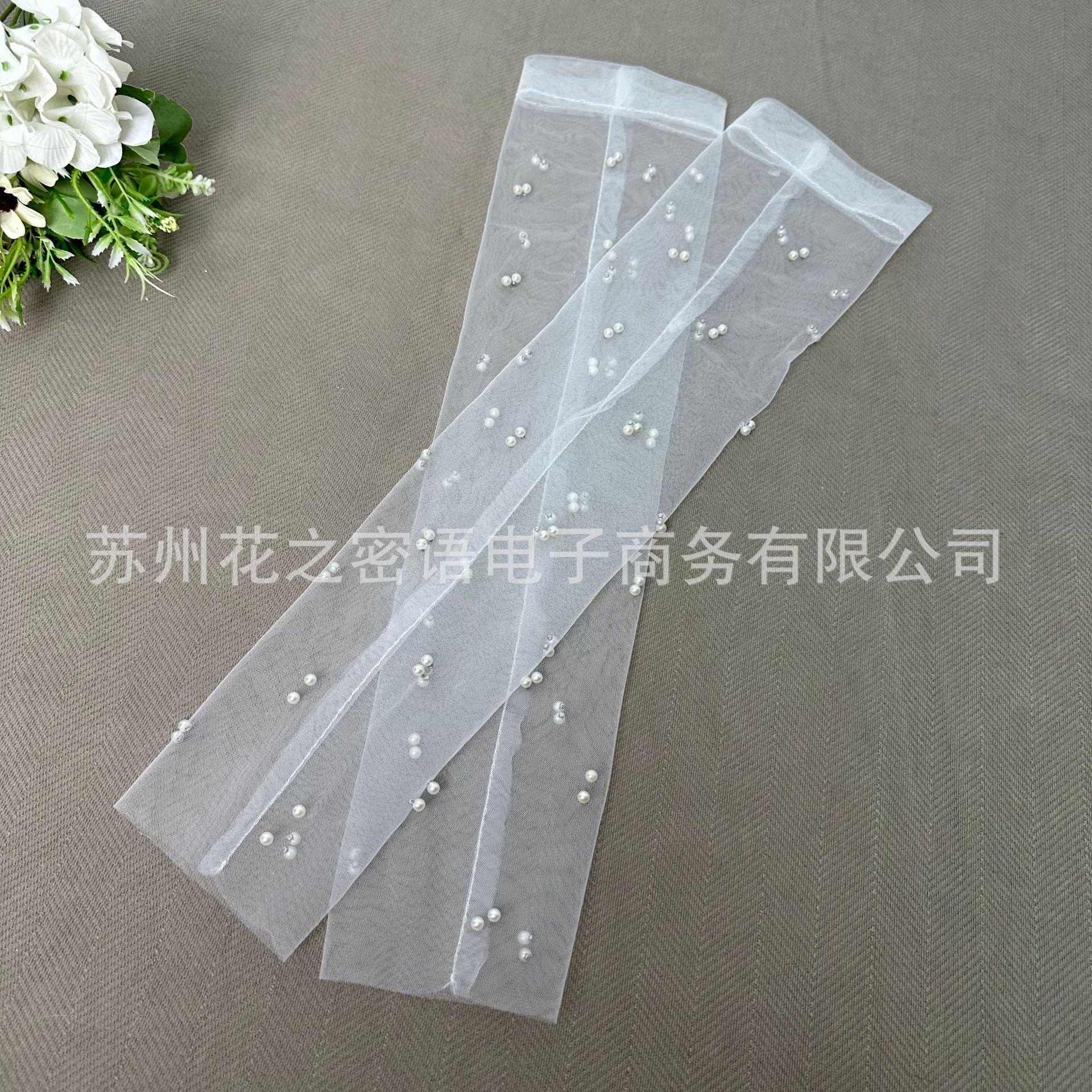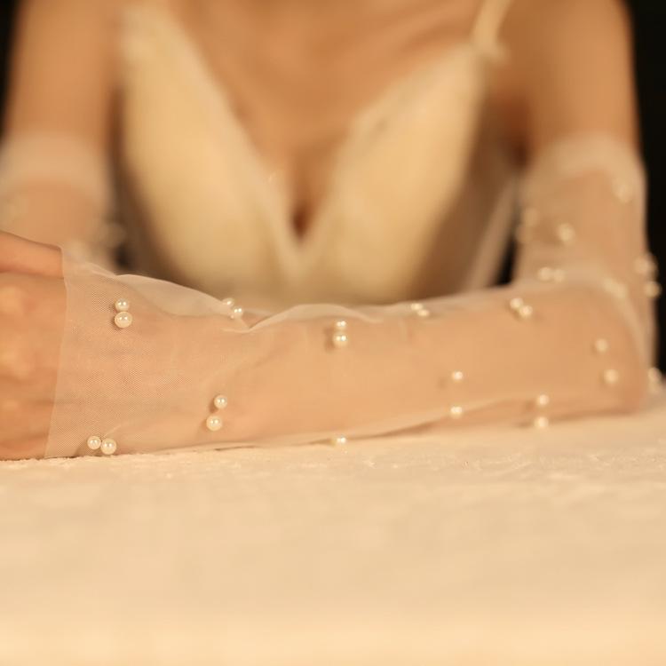 Guantes de boda nupcial guantes de boda vestido largos sin dedos guantes de hilo de perlas hilo blanco accesorios para sesión de fotos
