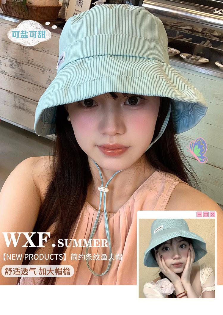 Sombrero de Pescador Rayado para Mujer Sombrero de Protección Solar de Ala Ancha para Exterior Nuevo de Primavera y Verano Viaje Delgado Transpirable Sombrero de Cubo