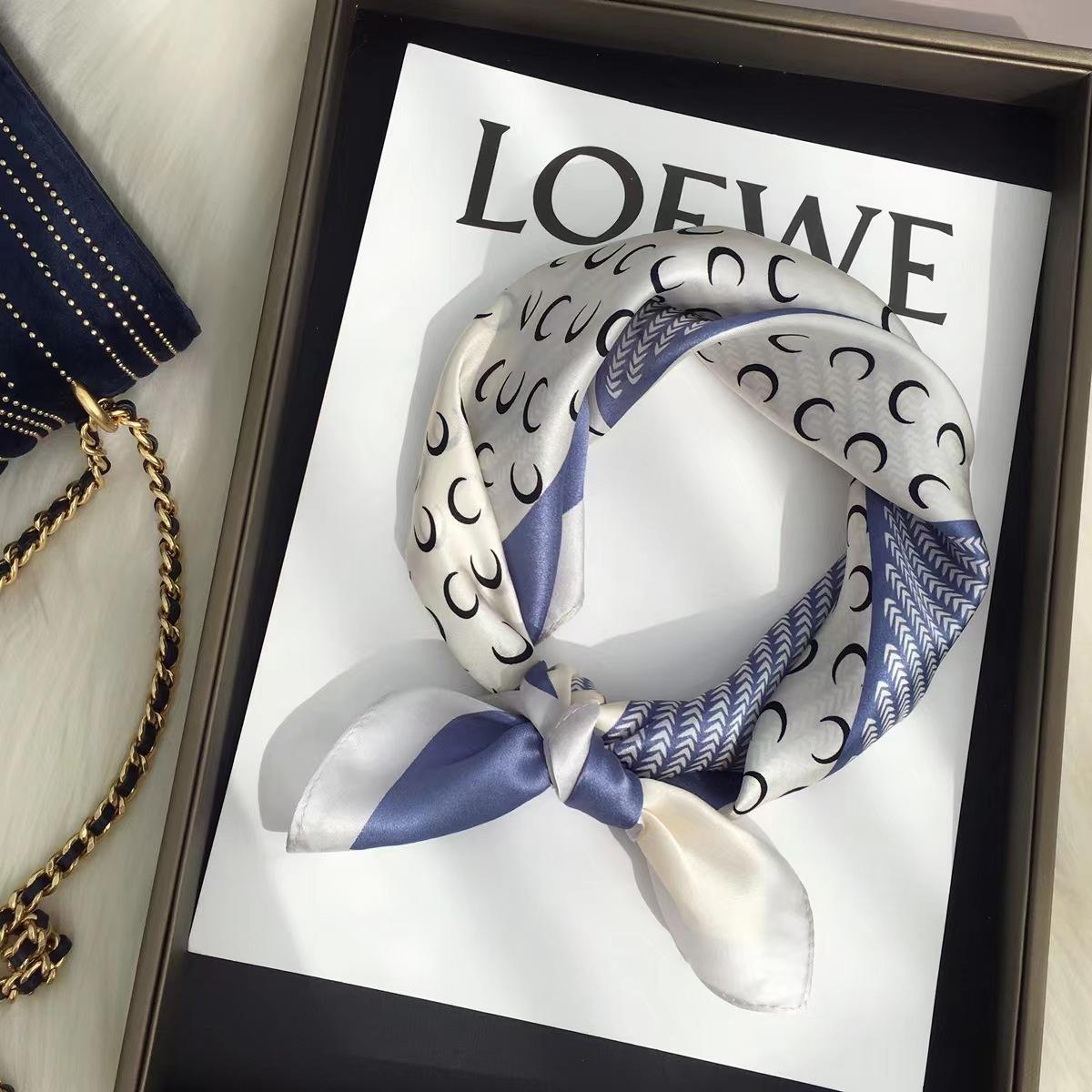 Pañuelo de Seda Pañuelo Cuadrado Pequeño Moda Coreana de Alta Gama Versátil Profesional Seda Artificial Pañuelo Pequeño Pañuelo de Seda Estampado Retro para Mujer