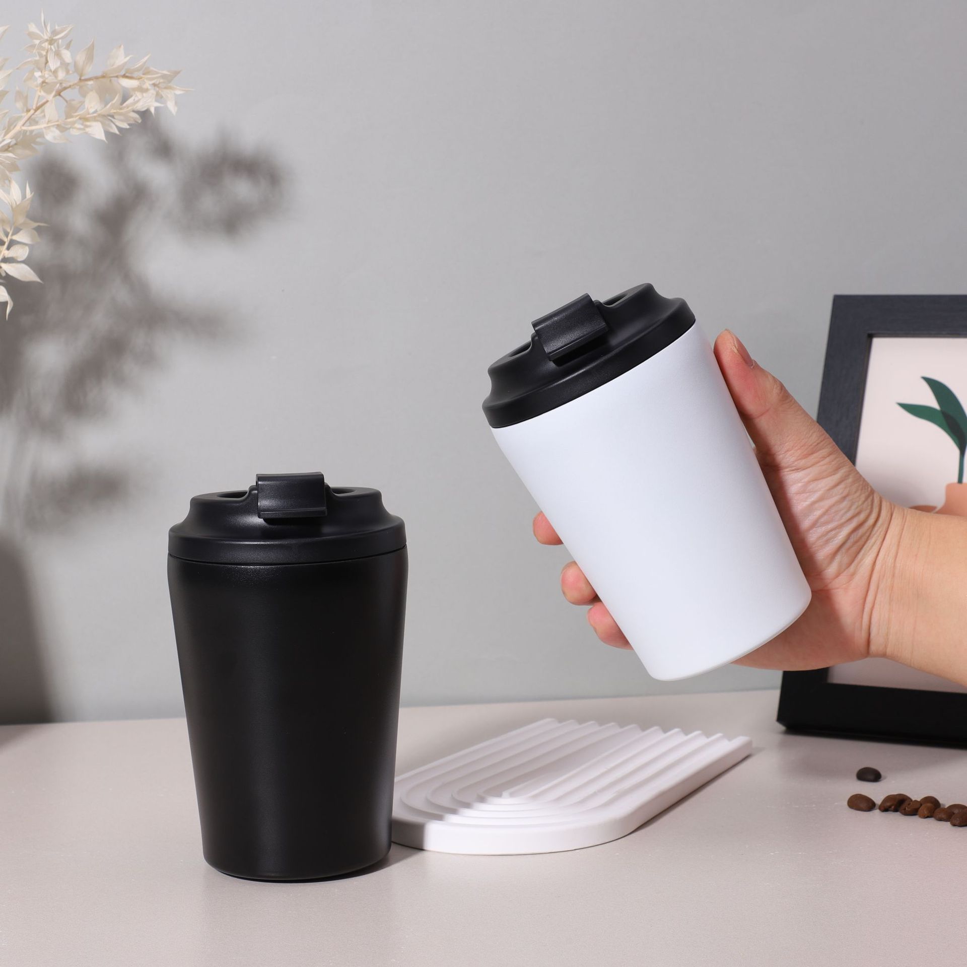 Nuevo Vaso de Café con Leche de Acero Inoxidable 304 al Vacío Transfronterizo de 12 oz, Grueso, Portátil, para Coche, para el Hogar, Vaso Termo