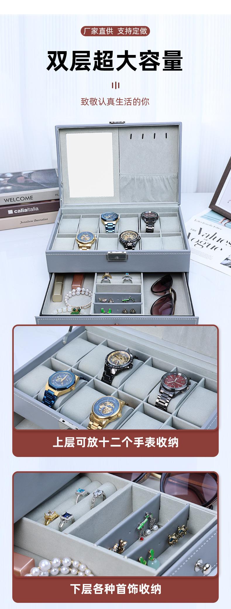 Caja de Relojes de Doble Capa al por Mayor de 12 Ranuras Caja de Almacenamiento de Joyería de Gran Capacidad con Espejo y Forro de Terciopelo Nueva Caja de Regalo Exquisita