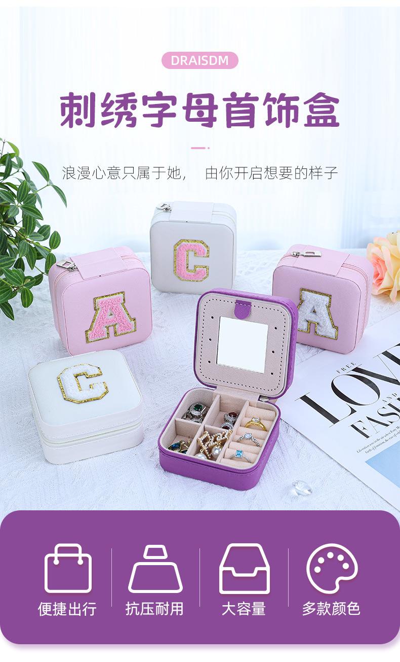 Nueva Caja Simple Bordada para Almacenamiento de Joyería Caja de Joyería Portátil Caja para Aretes y Anillos Venta al por Mayor Joyería de Dibujos Animados