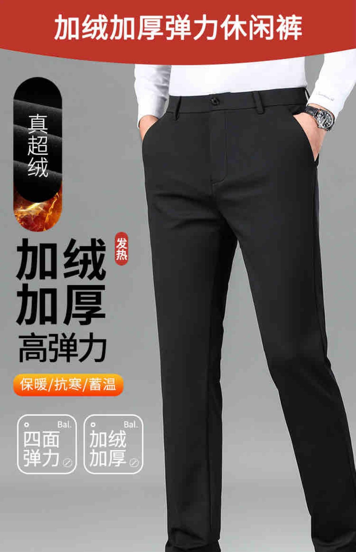 Pantalones Casuales de Negocios de Alta Elasticidad Otoño e Invierno Nuevos para Hombre Casual para Viajar de Negocios Ajustados Rectos Color Sólido Pantalones Casuales