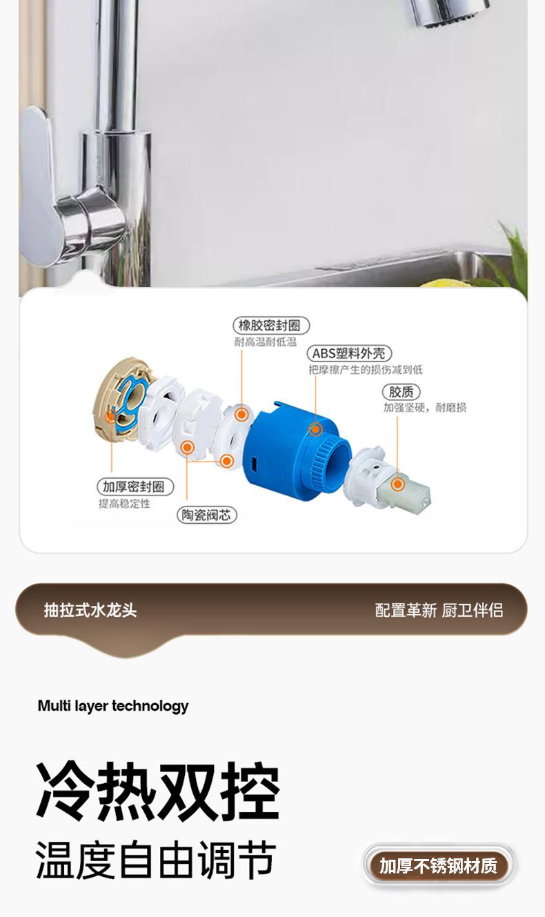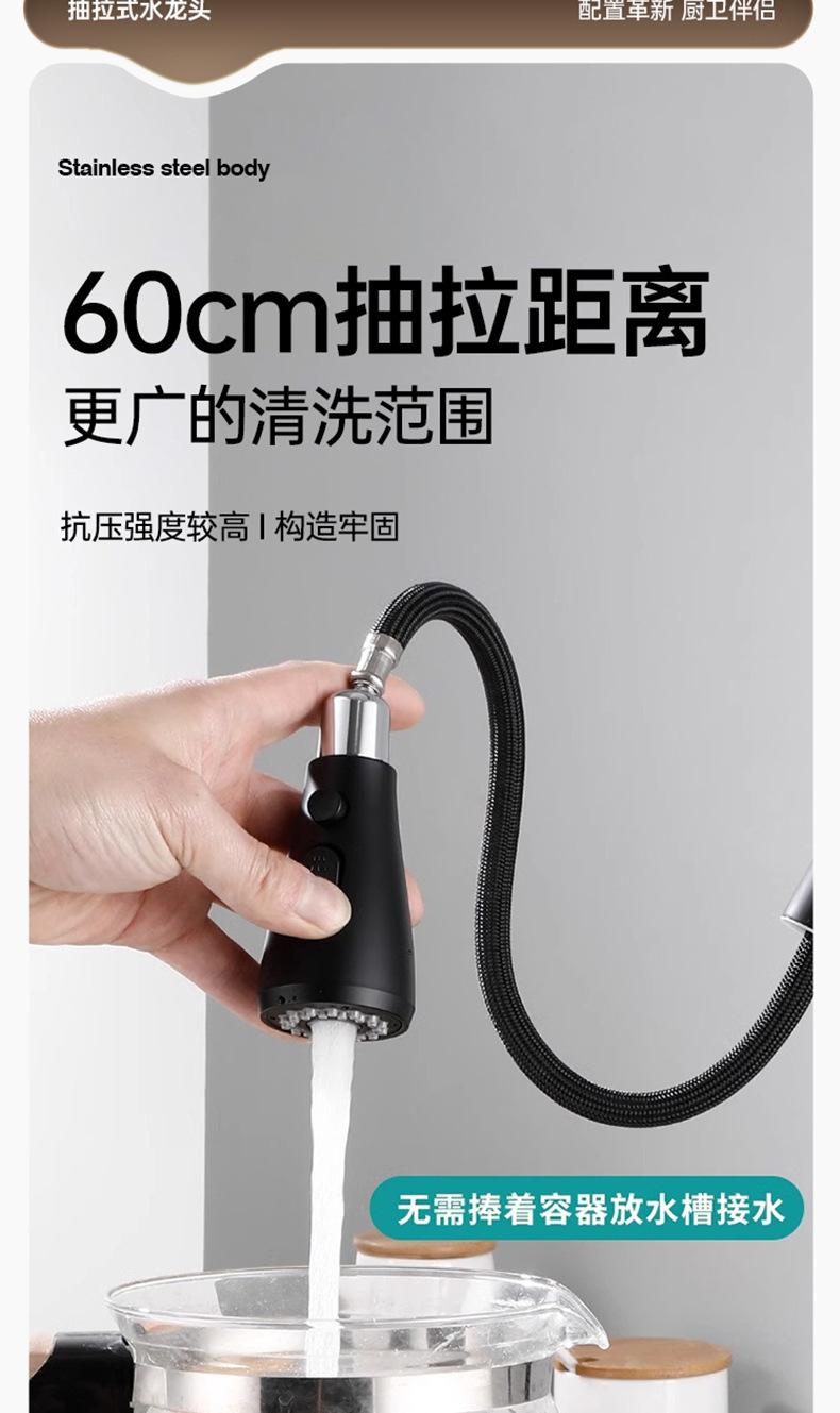 Carbon Black Model - Hot and Cold Pull-Out Kitchen Sink - Without Water Stop, Carbon Black Model - Hot and Col...