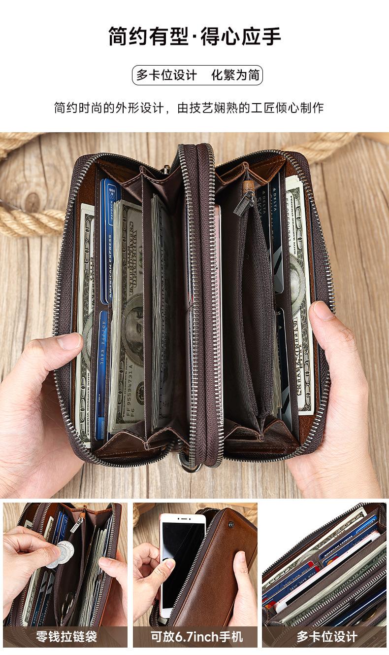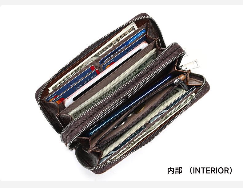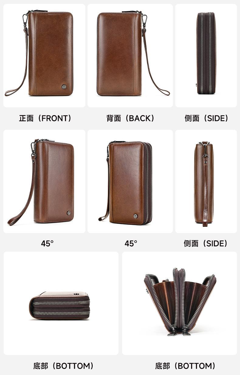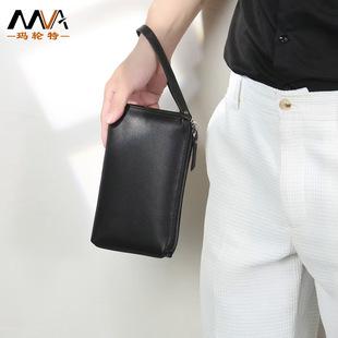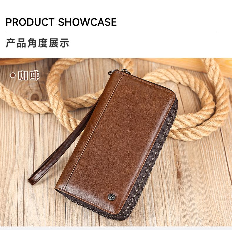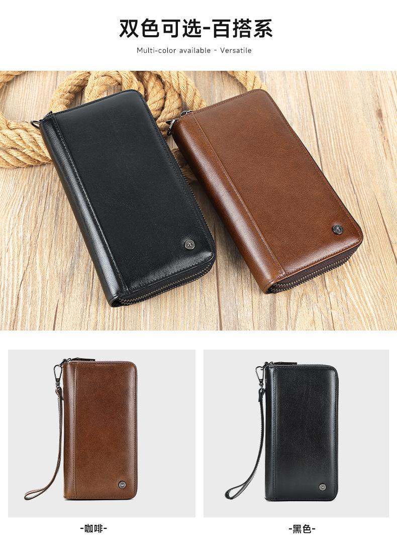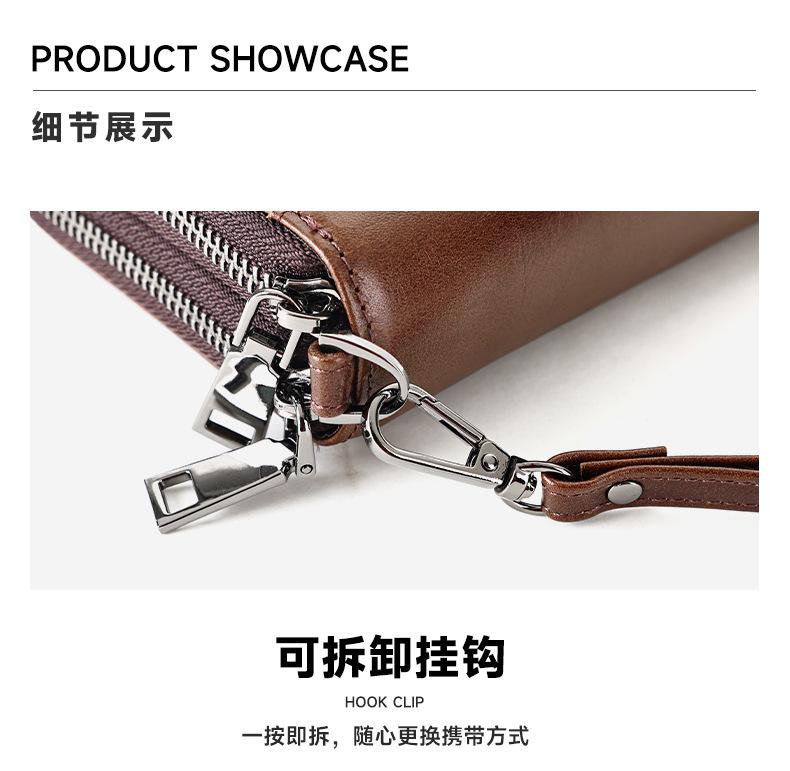 Clutch de Hombre de Cuero Genuino Bolso Multifuncional Cierre de Cremallera Gran Capacidad Bolso de Mano Negocios Casual Textura Bolso de Hombre Venta al por Mayor