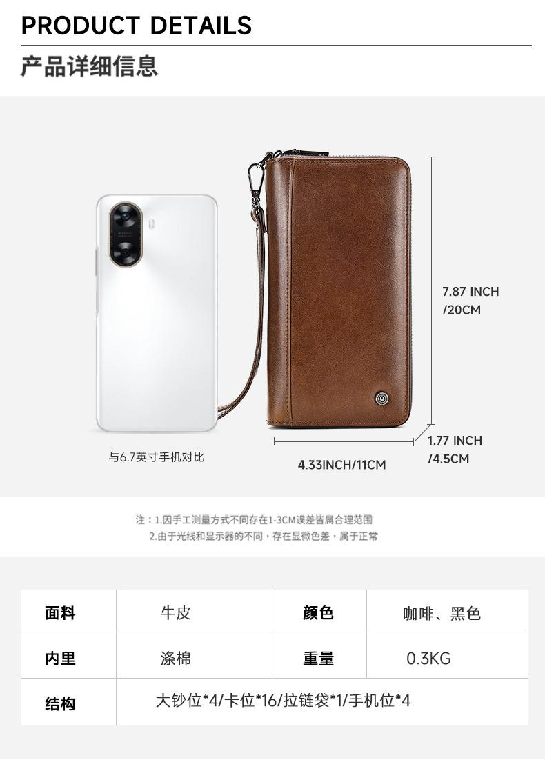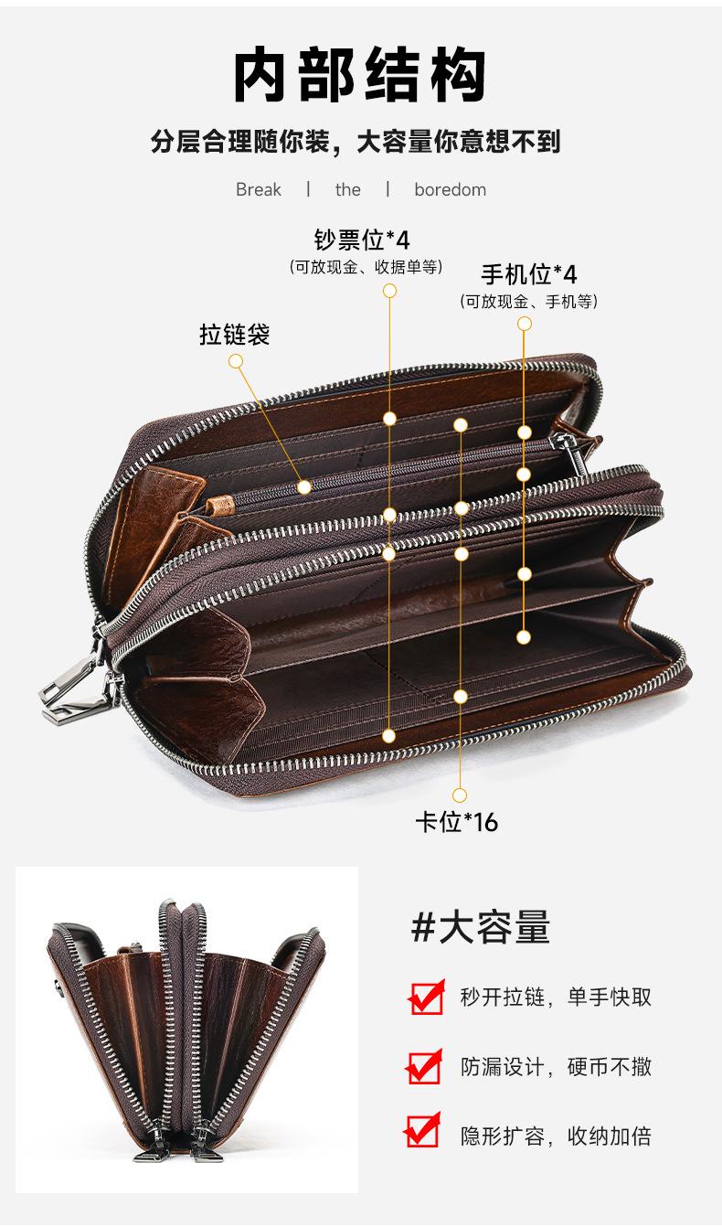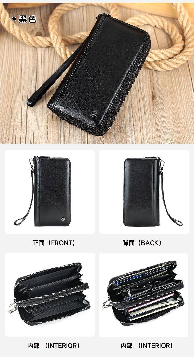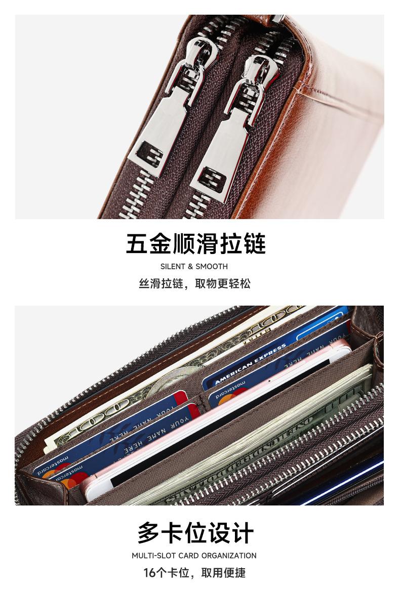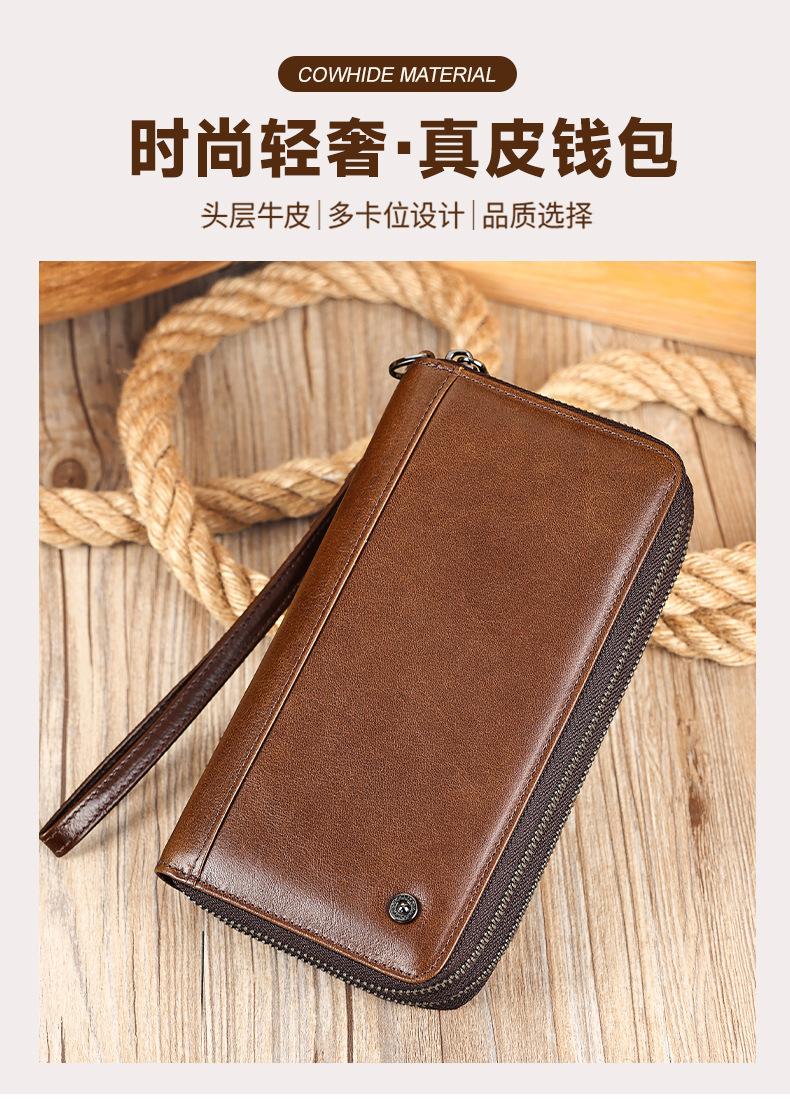 Clutch de Hombre de Cuero Genuino Bolso Multifuncional Cierre de Cremallera Gran Capacidad Bolso de Mano Negocios Casual Textura Bolso de Hombre Venta al por Mayor