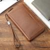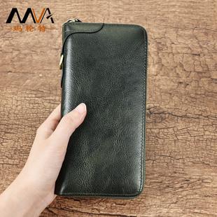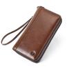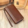 Nuevo Comercio Exterior Gran Capacidad Ranuras Múltiples Tarjetas Clutch Estilo Largo Retro Cuero Encerado al Aceite Billetera Bolso de Mano de Cuero Genuino para Hombre de Negocios