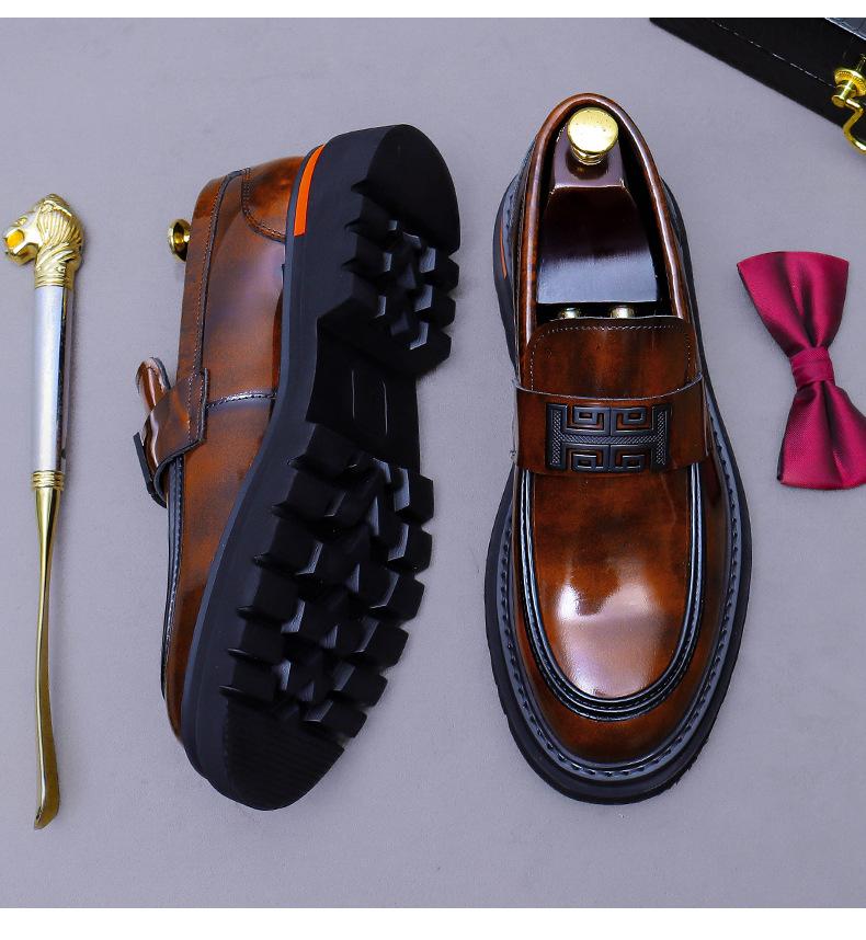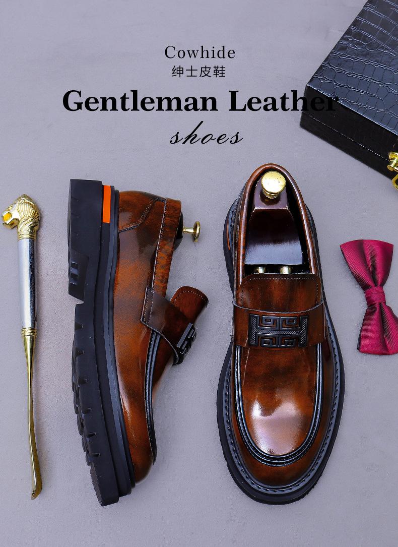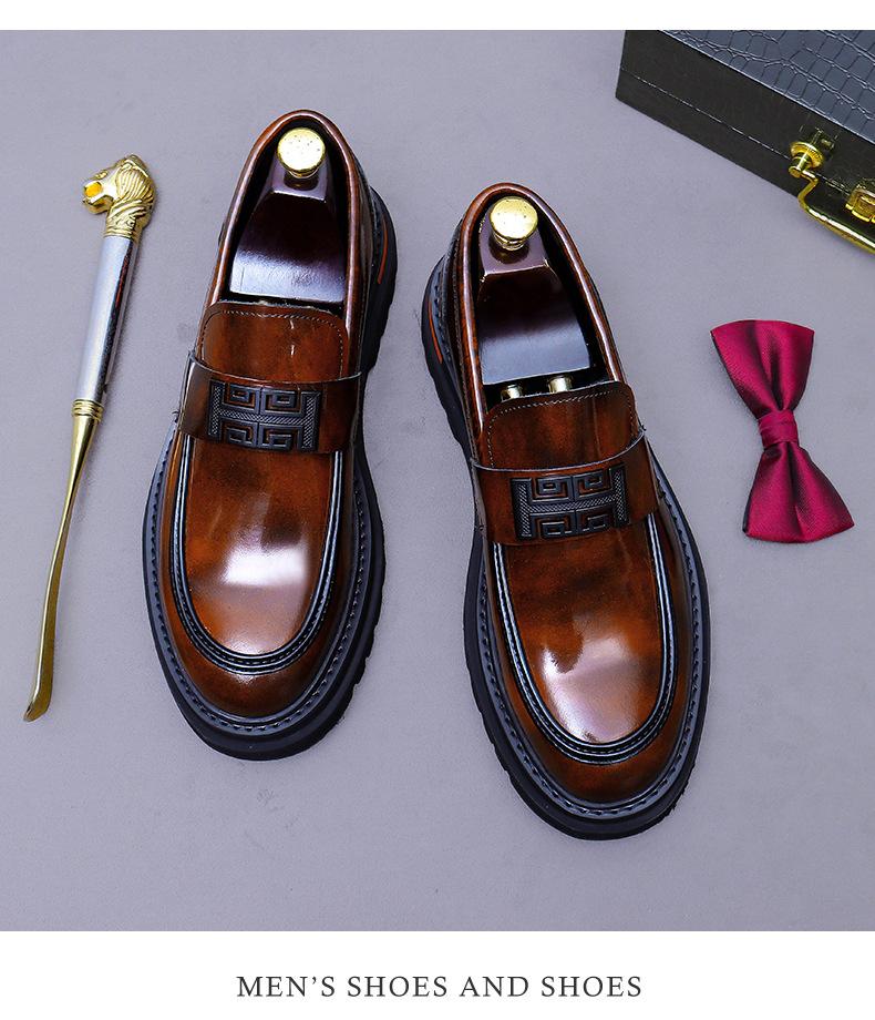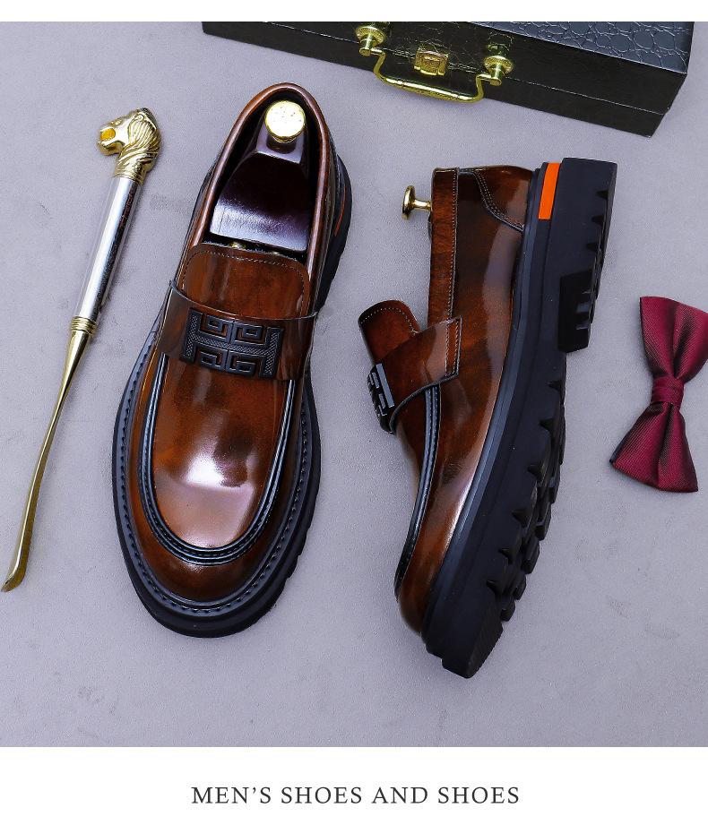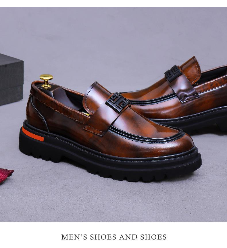 Zapatos Slip-on con Plataforma Gruesa para Aumentar la Altura Nuevos Zapatos de Hombre Zapatos de Cuero Cuero Genuino de Vaca Casual Ligeros Versátiles Zapatos Formales de Negocios
