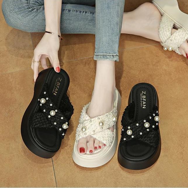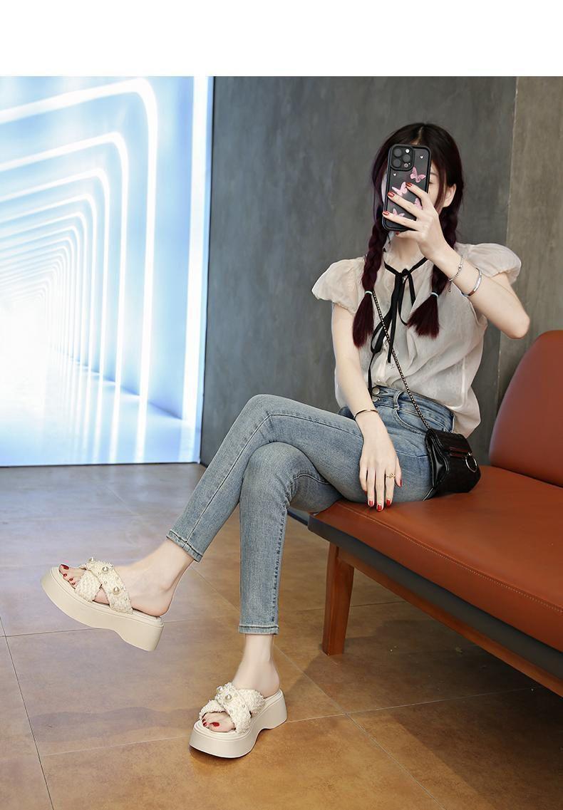 Sandalias Slip-On de Suela Gruesa Estilo Francés para Mujer, Zapatillas de Plataforma de Moda de Verano 2025, Ropa Popular para Exteriores