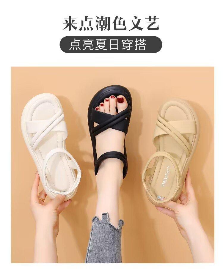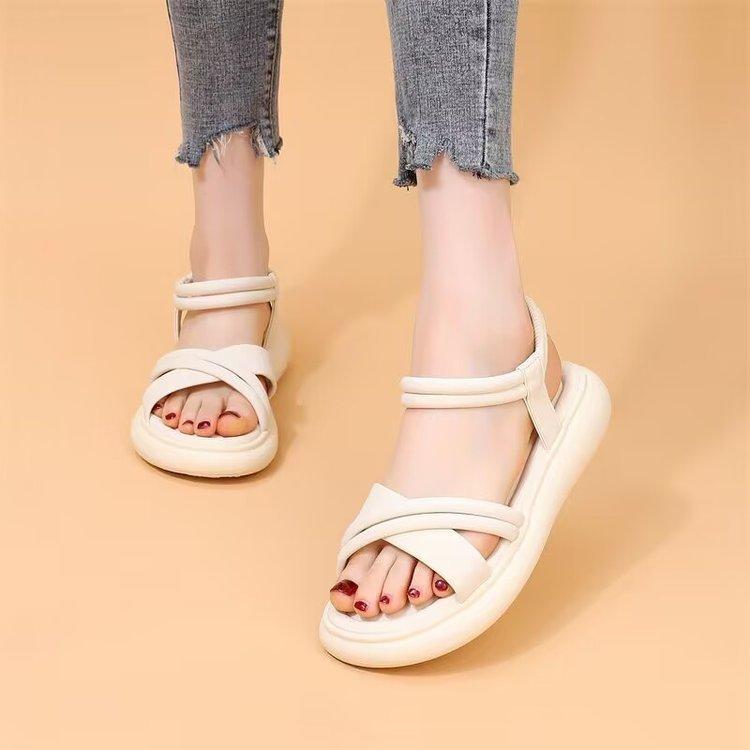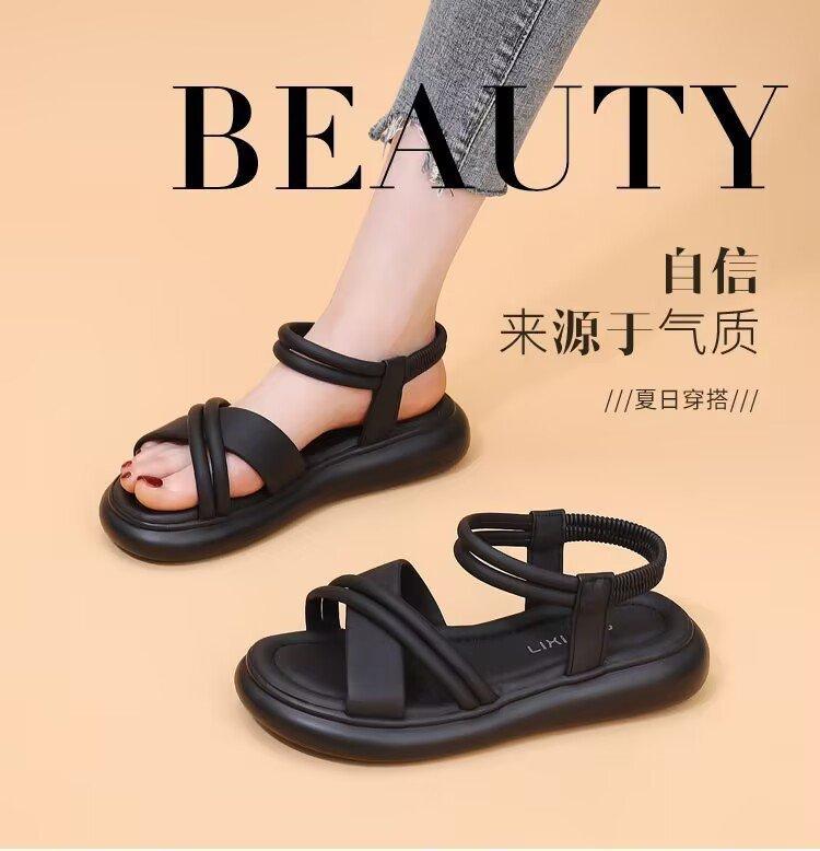 Sandalias planas para mujer 2024 Verano Nuevo Estilo Hada Banda elástica con falda Ligeras Antideslizantes Suela suave Zapatos de playa