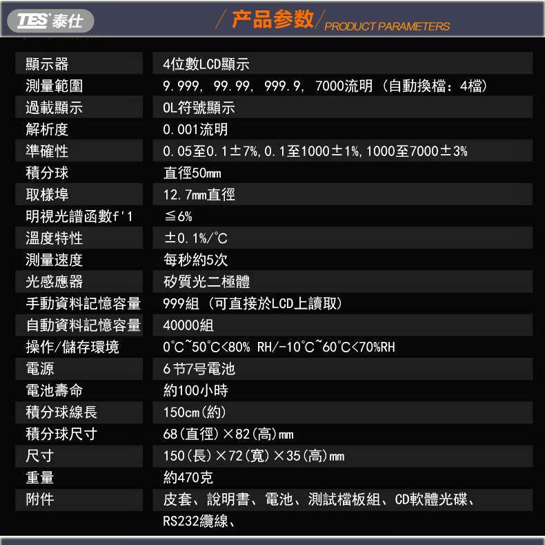 Medidor de flujo luminoso Taiwan Taishi TES-133 luxómetro lumen digital alta precisión probador de lúmenes productos genuinos