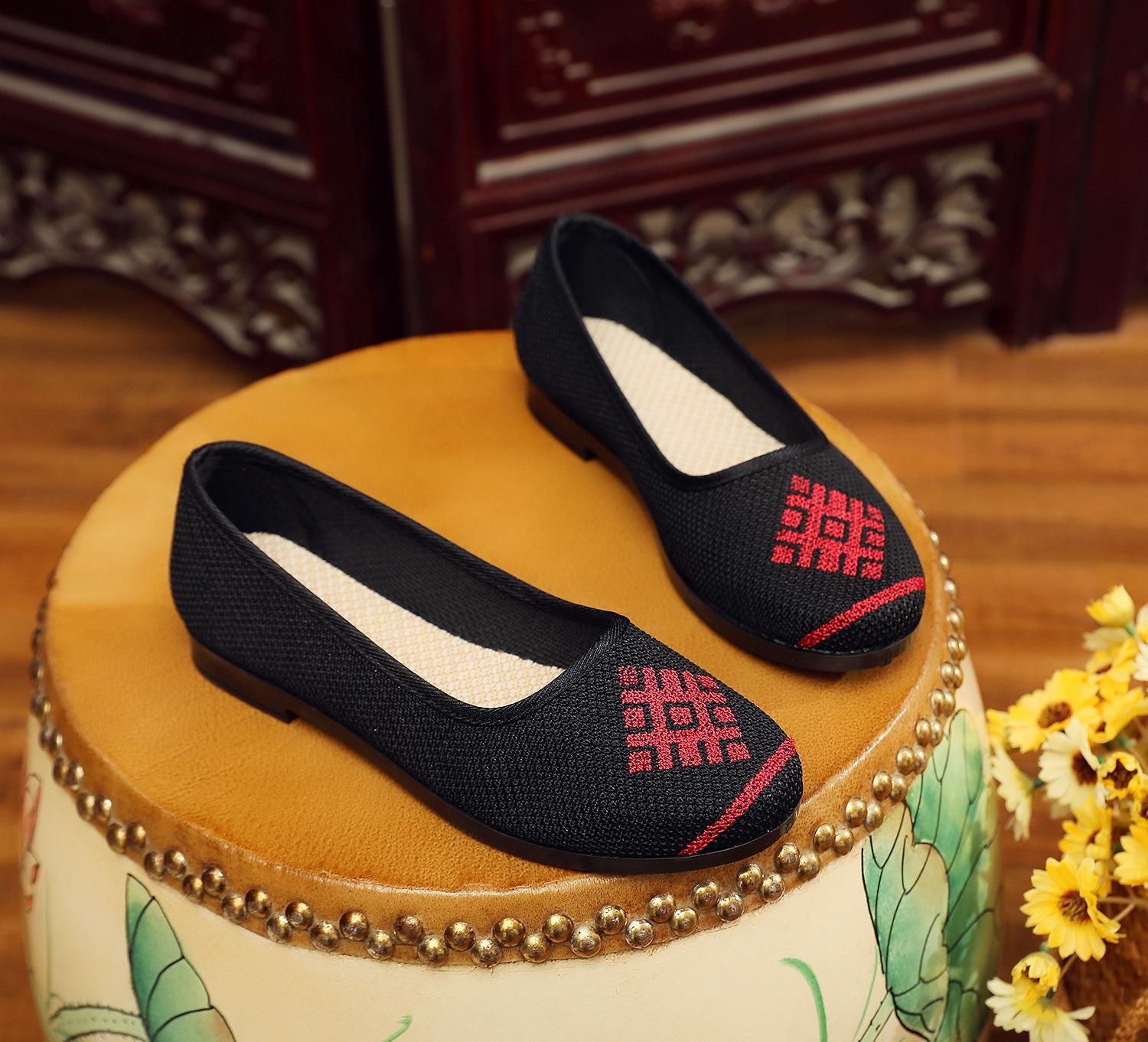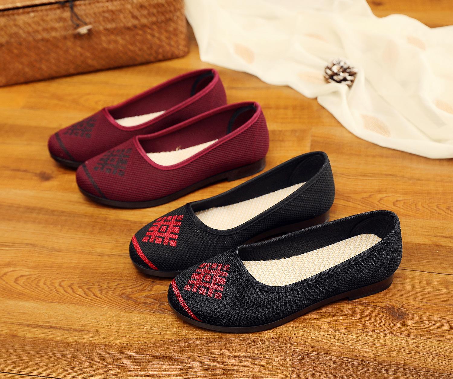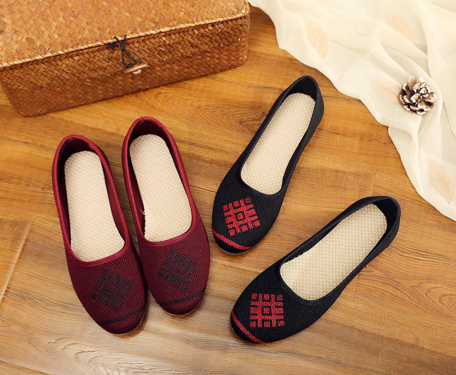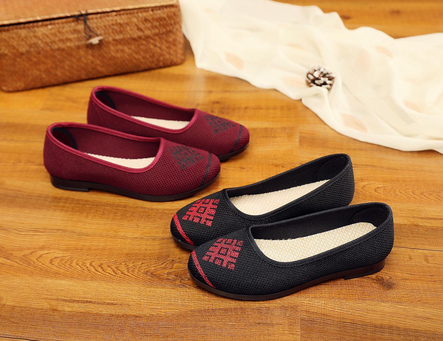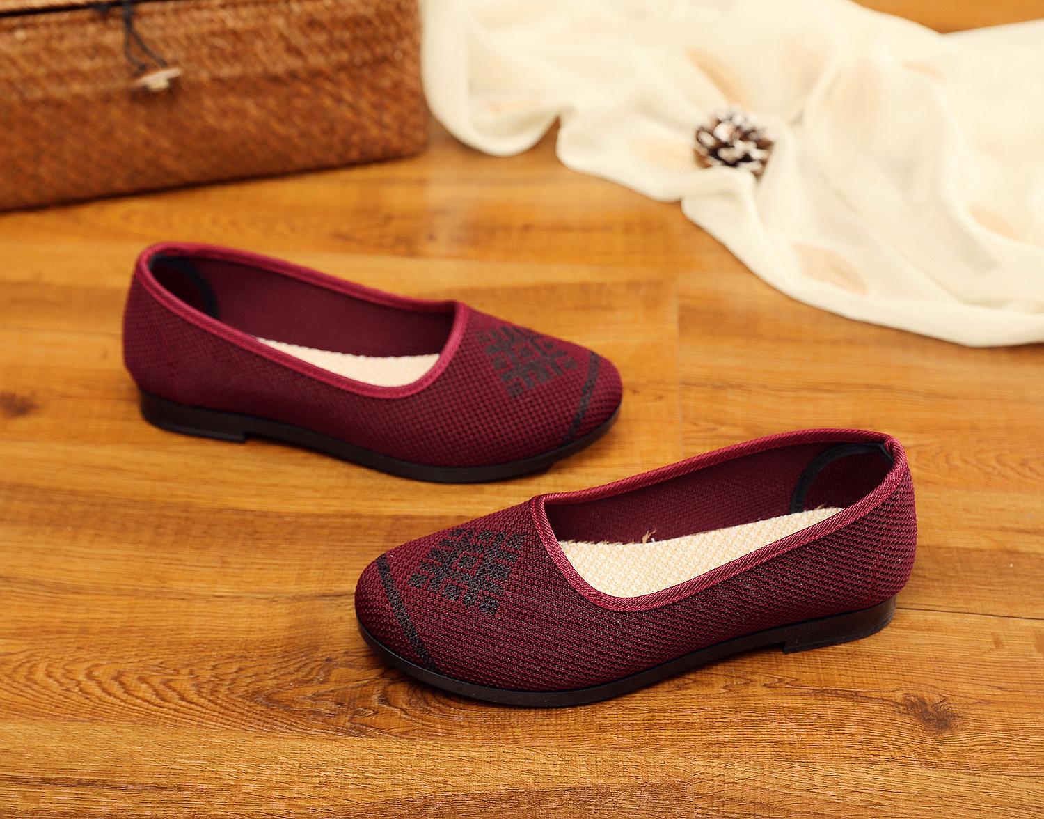 Zapatos nuevos de boca baja para verano, transpirables y no sofocantes, de suela blanda, ligeros, zapatos de tela Old Beijing de una sola pierna, zapatos de madre, zapatos de tela