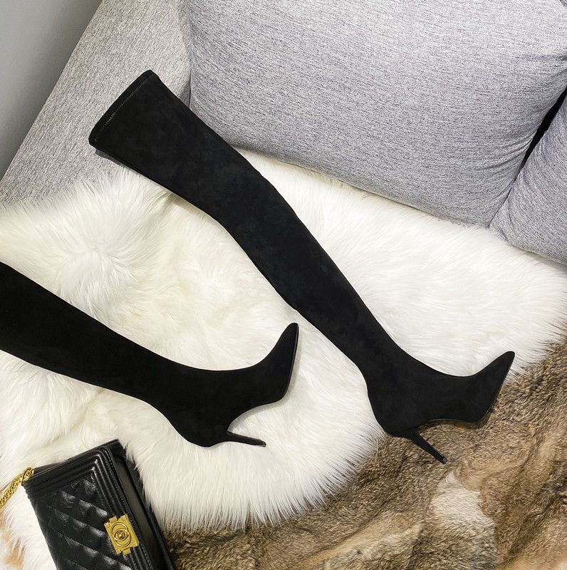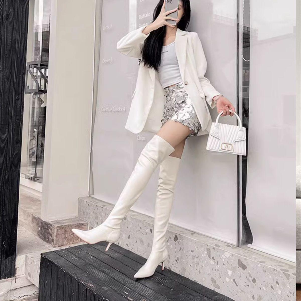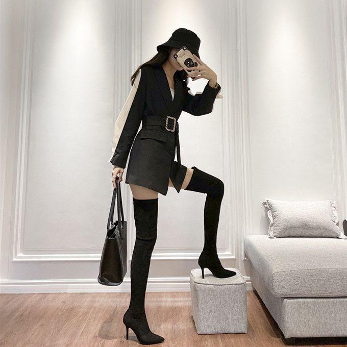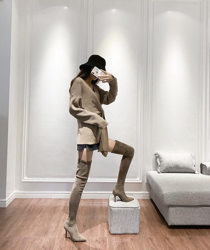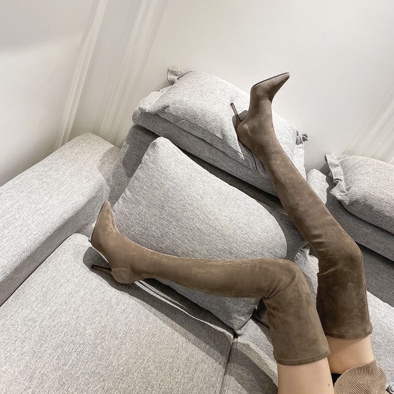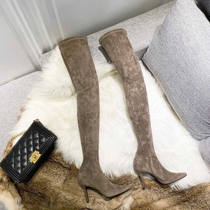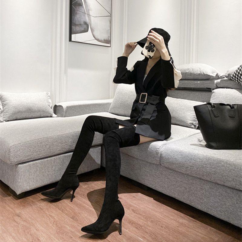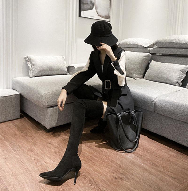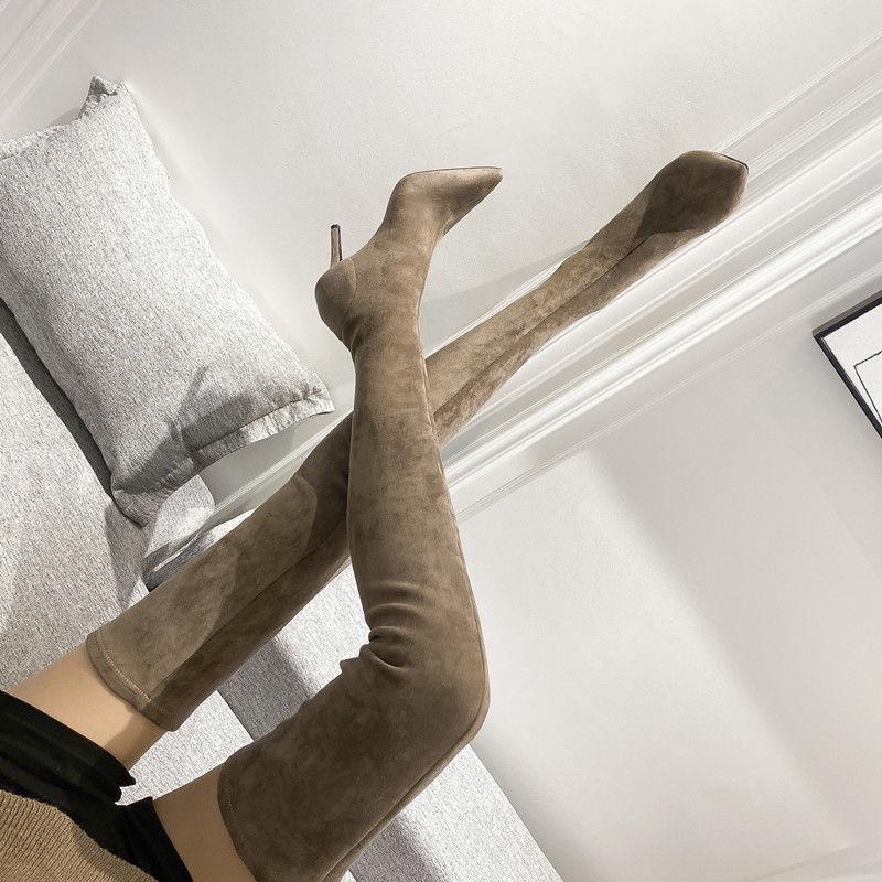 Botas largas por encima de la rodilla para mujer de tubo alto 2025 nuevo otoño e invierno punta puntiaguda tacones altos tacón de aguja botas elásticas ajustadas a la pierna botas largas