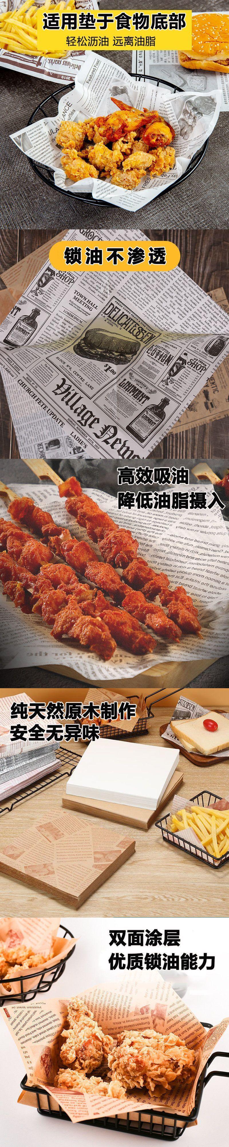 Papel absorbente de aceite al por mayor Papel americano a prueba de aceite Papel para bandeja Papel para freír y hornear Papel especial para alimentos Almohadilla de papel para aceite Grado alimenticio Impresión