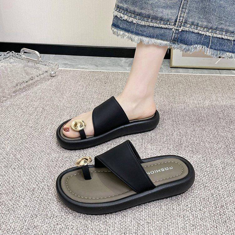 2024 primavera y verano nuevo fondo grueso punta poco profunda moda combinable antideslizante playa casual chanclas para mujer