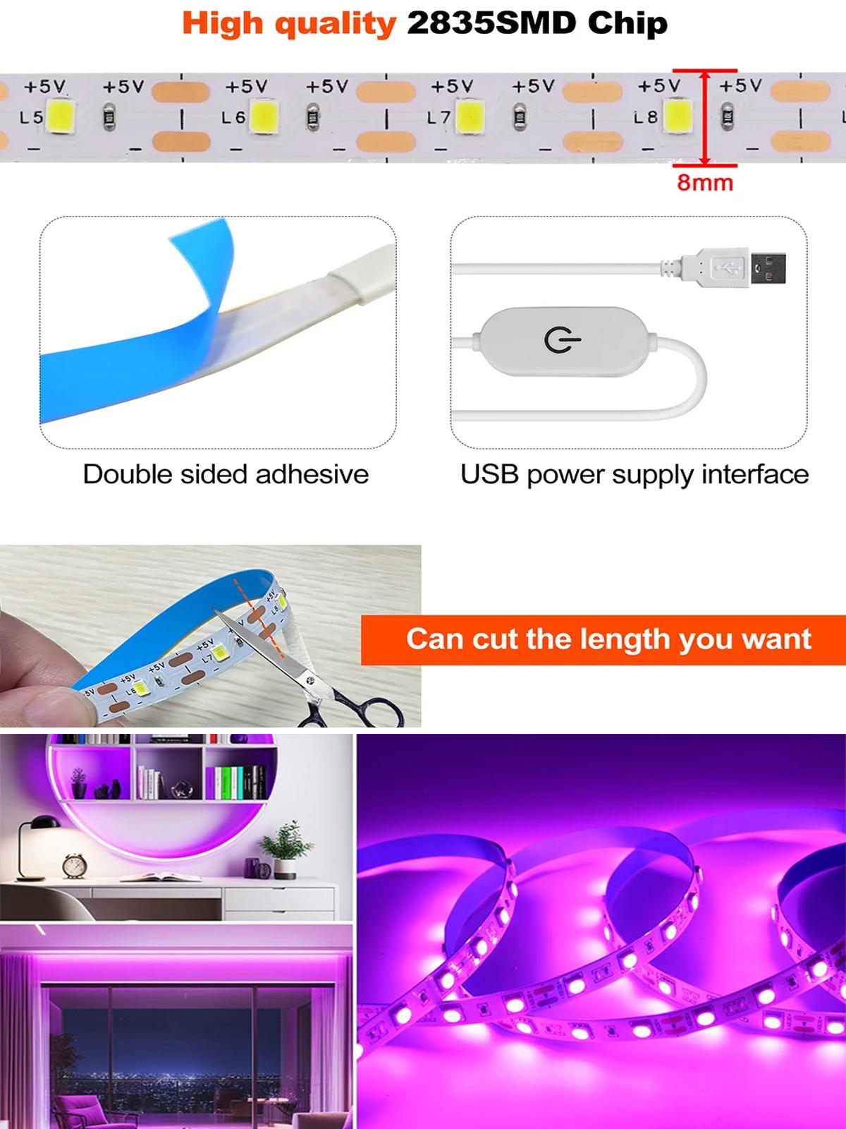 Eleva tu Espacio con Estilo Transforma tu habitación con nuestras Tiras LED USB Rosadas. Con un interruptor táctil, estas luces ofrecen un control versátil. La tecnología SMD2835 garantiza un brillo brillante y uniforme. Perfectas para retroiluminación de TV o decoración de dormitorio, añaden una luz suave y ambiental. Cada metro contiene 60 LED, lo que los hace ideales para necesidades de iluminación extendida.