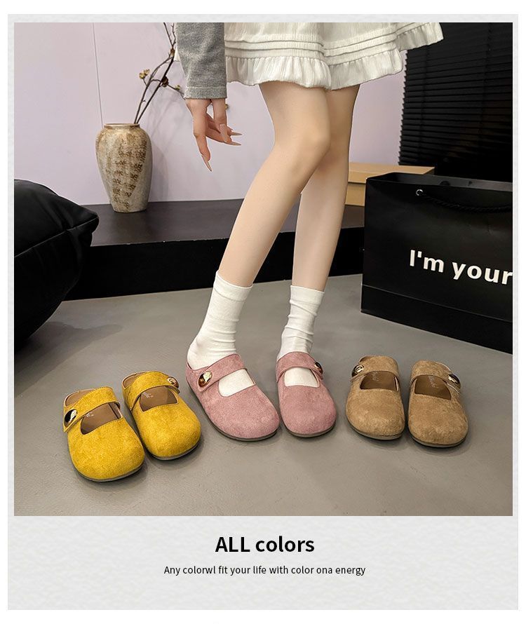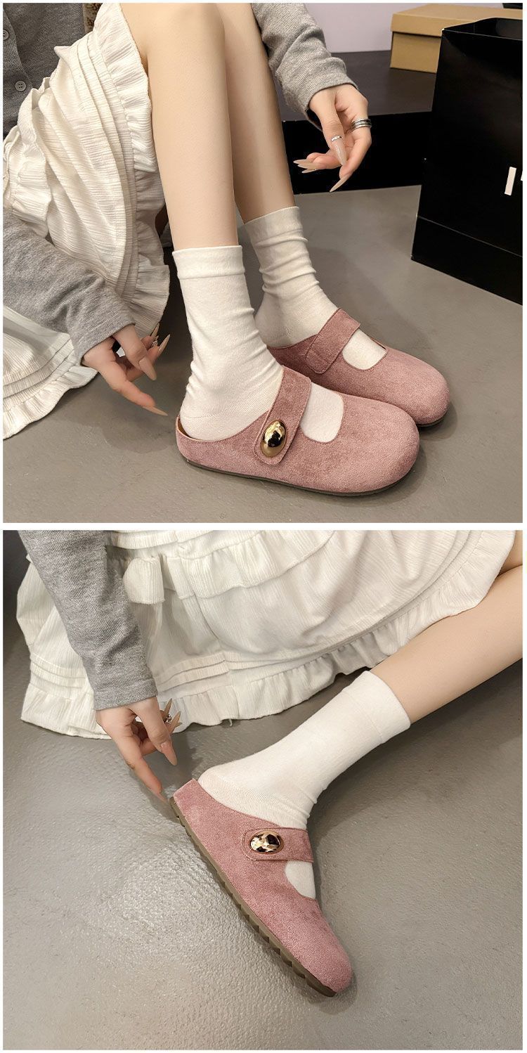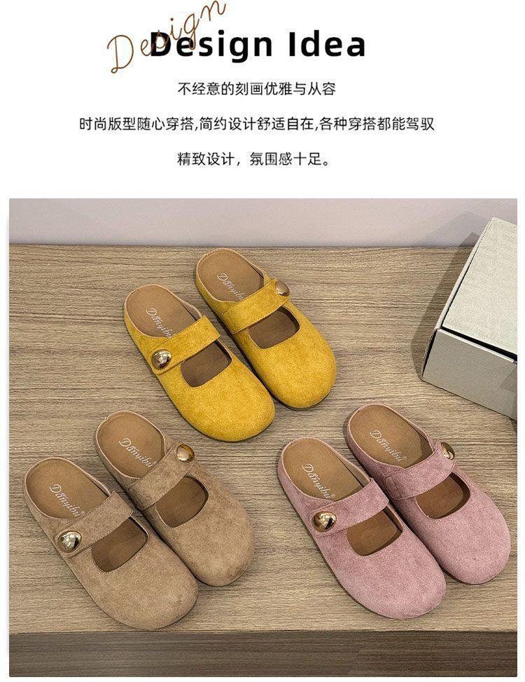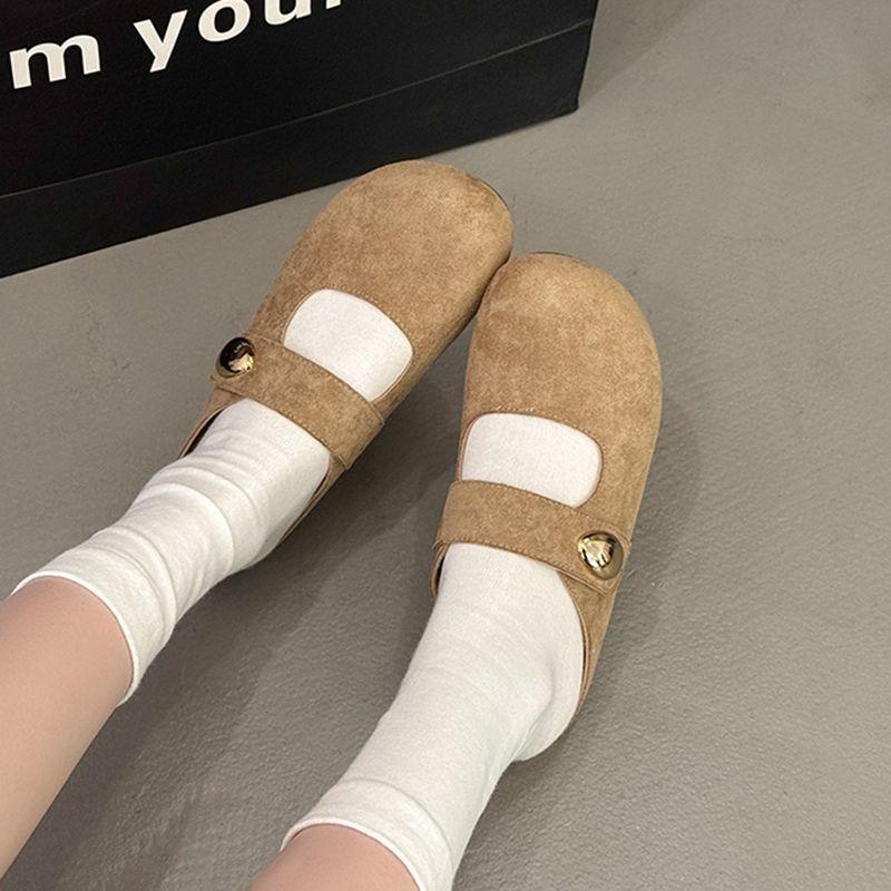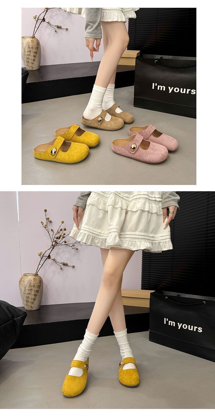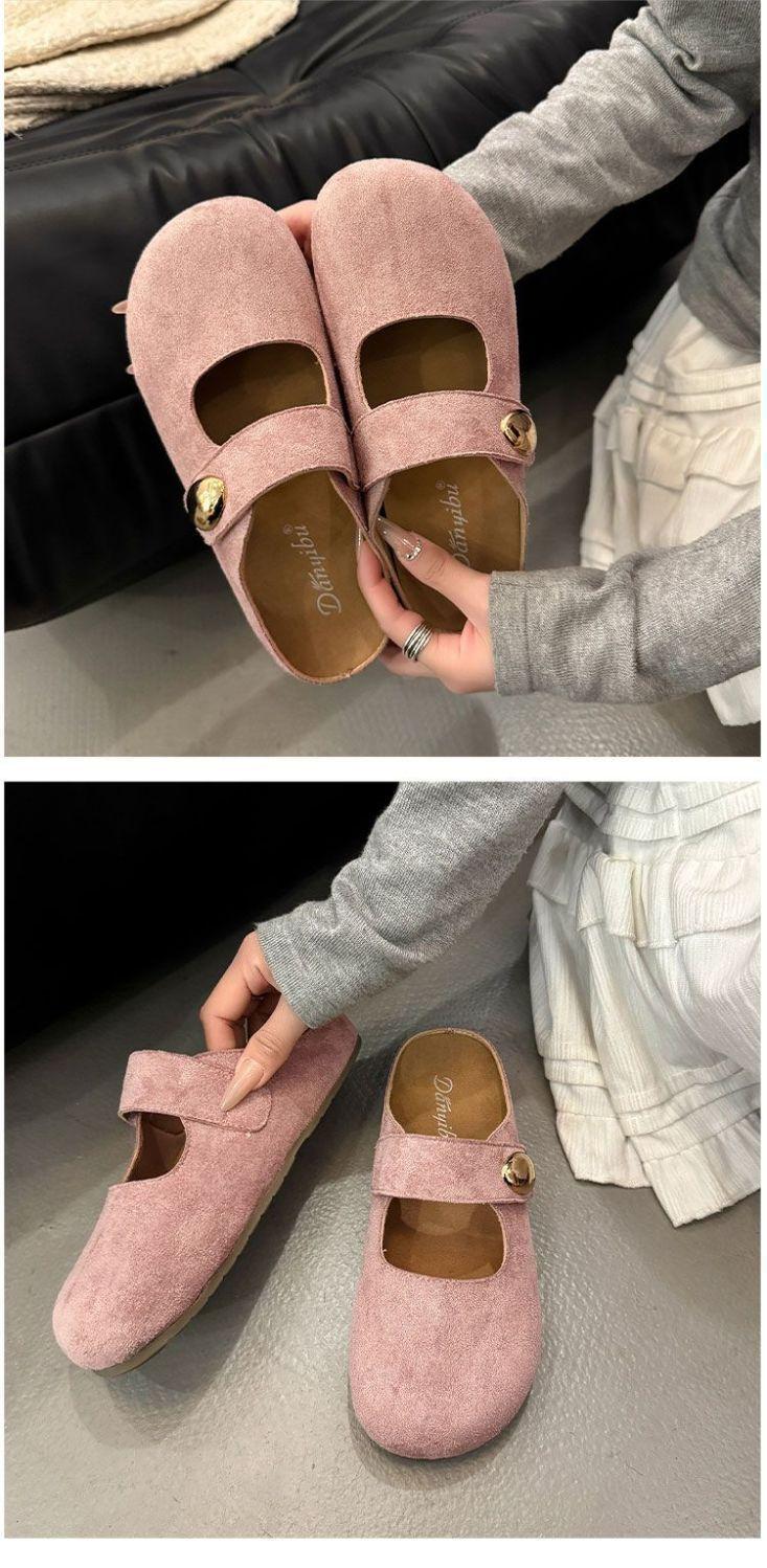 Pantuflas de media plantilla cómodas de suela blanda sin cordones para otoño de 2025, nueva llegada, pantuflas Bucken francesas retro de moda para mujer