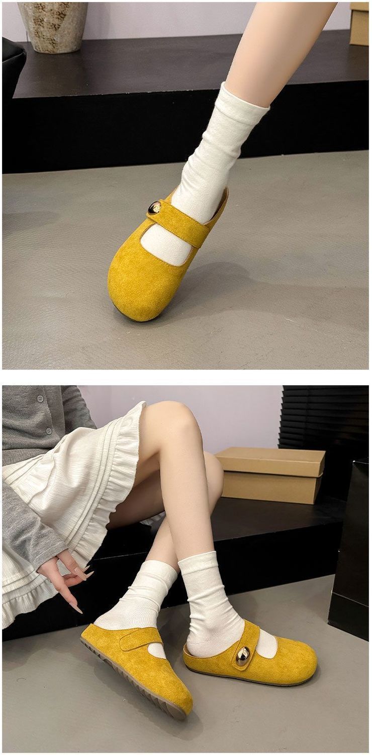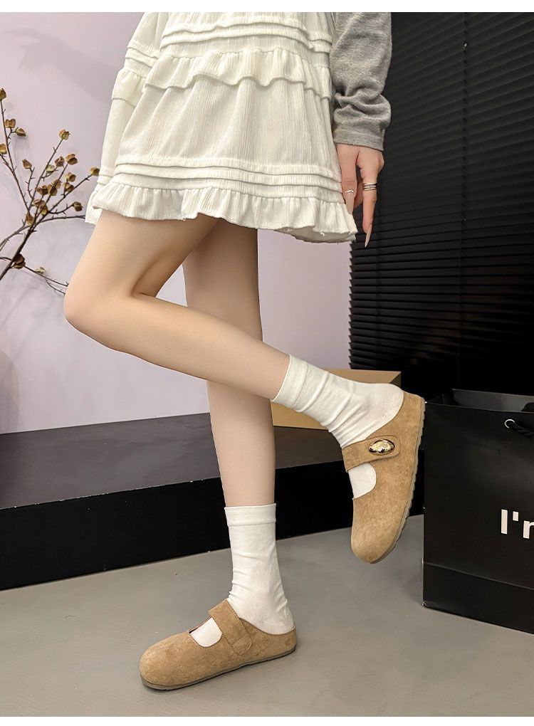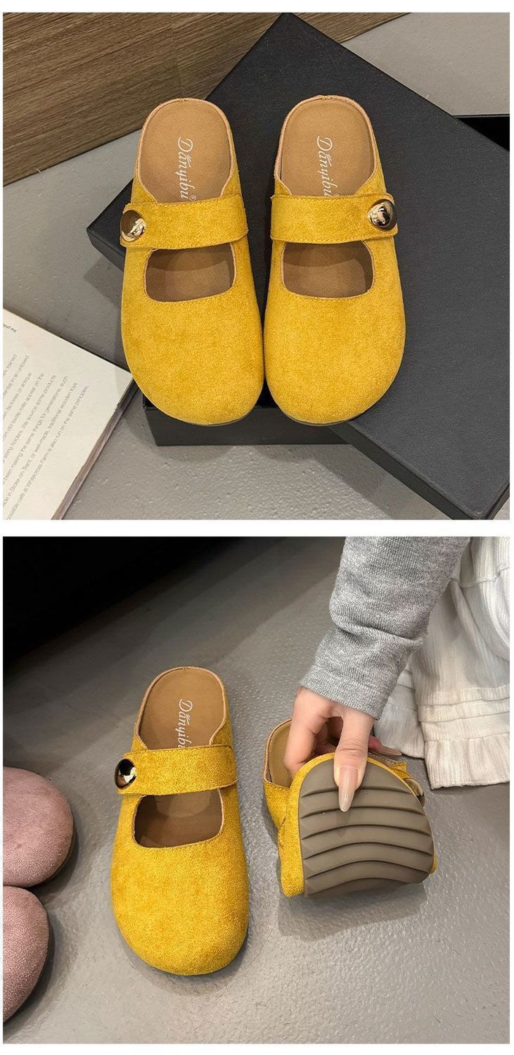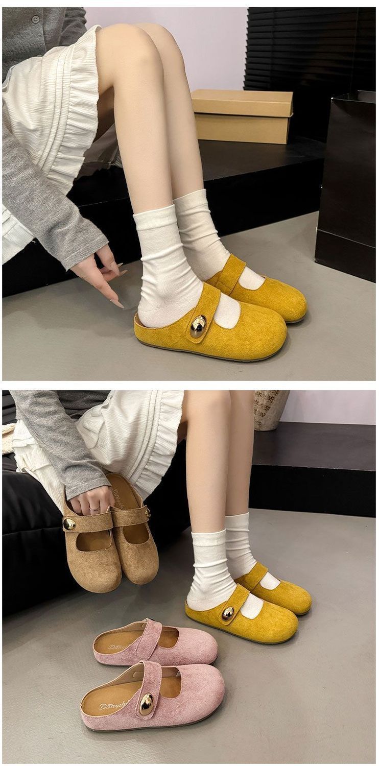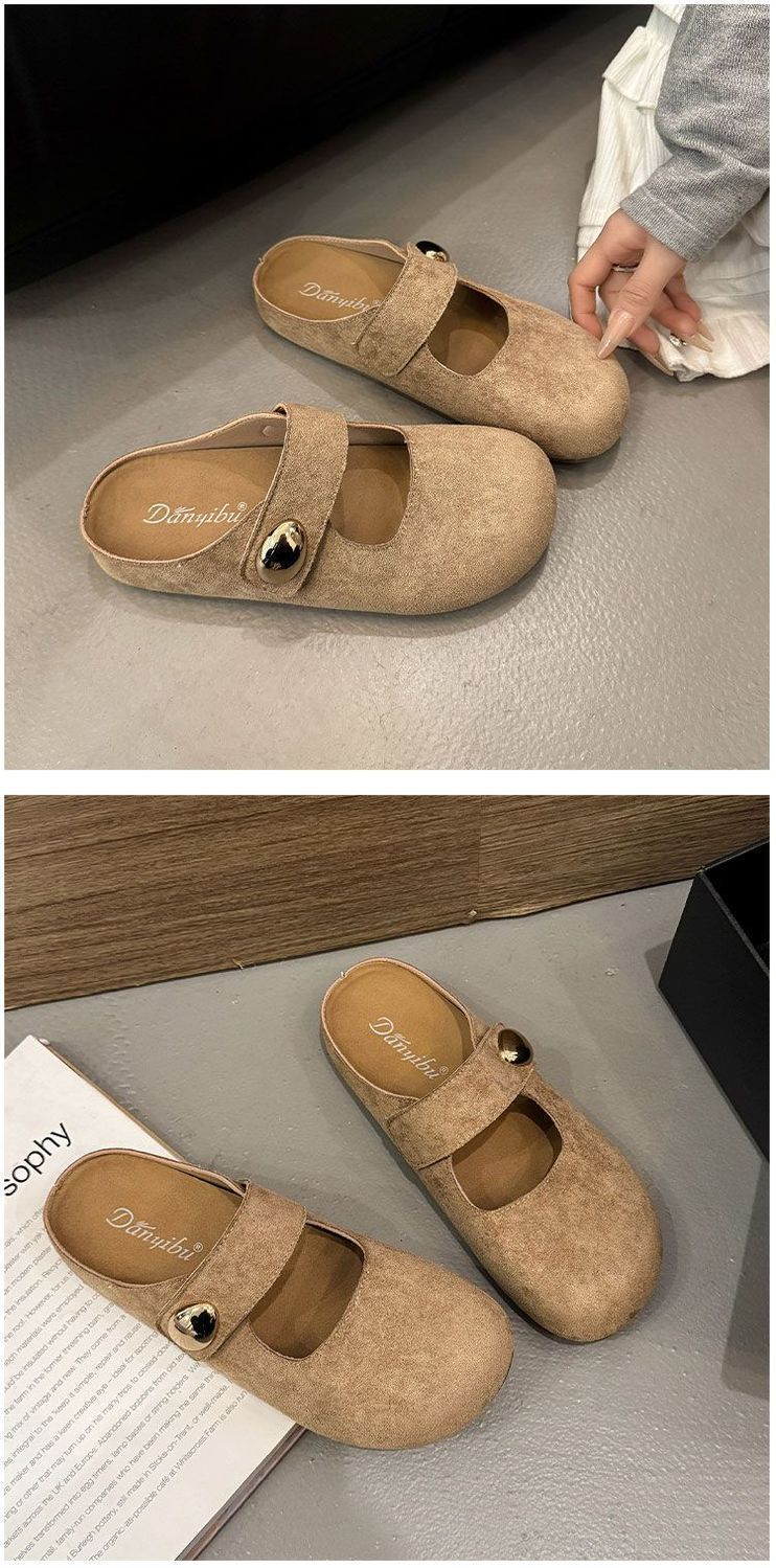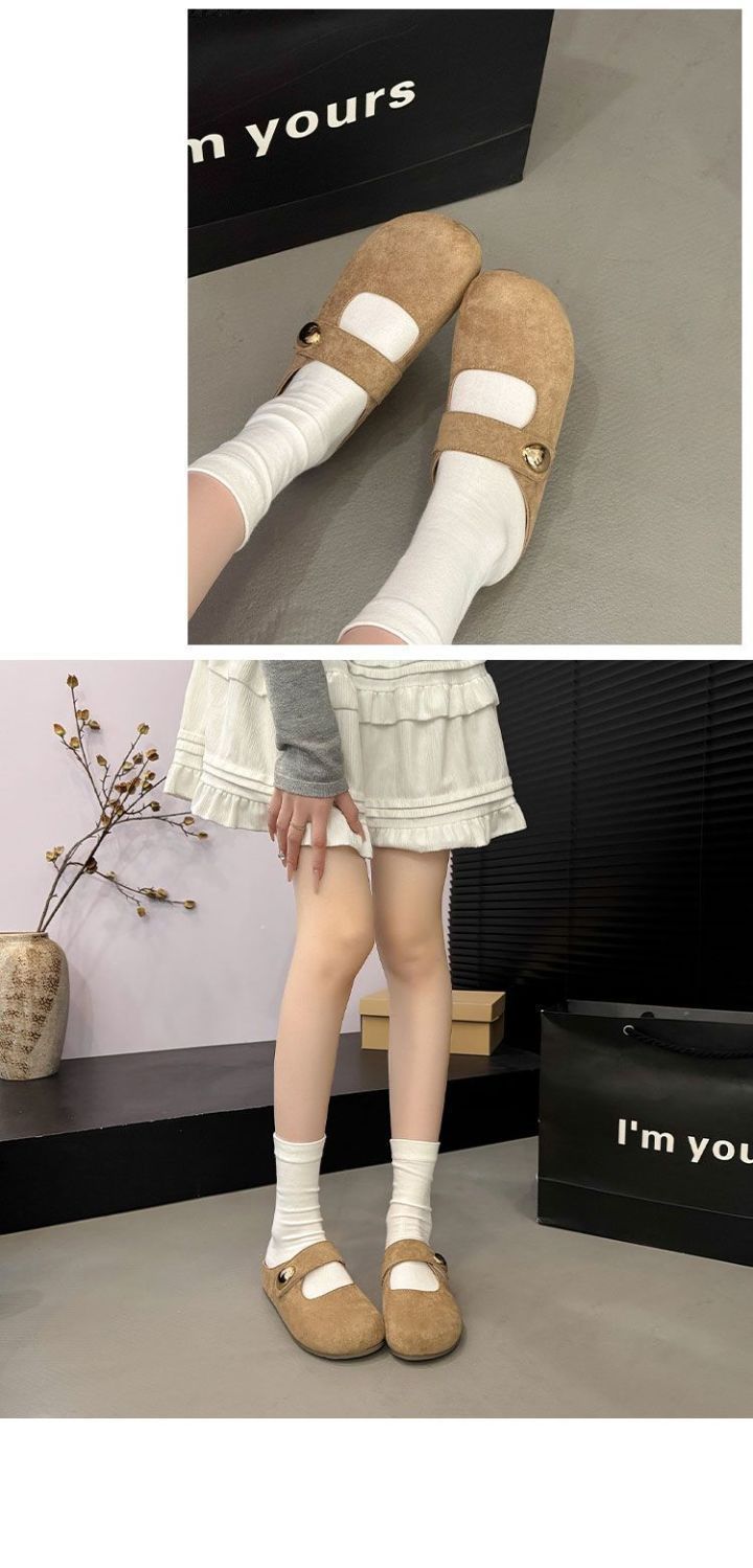 Pantuflas de media plantilla cómodas de suela blanda sin cordones para otoño de 2025, nueva llegada, pantuflas Bucken francesas retro de moda para mujer