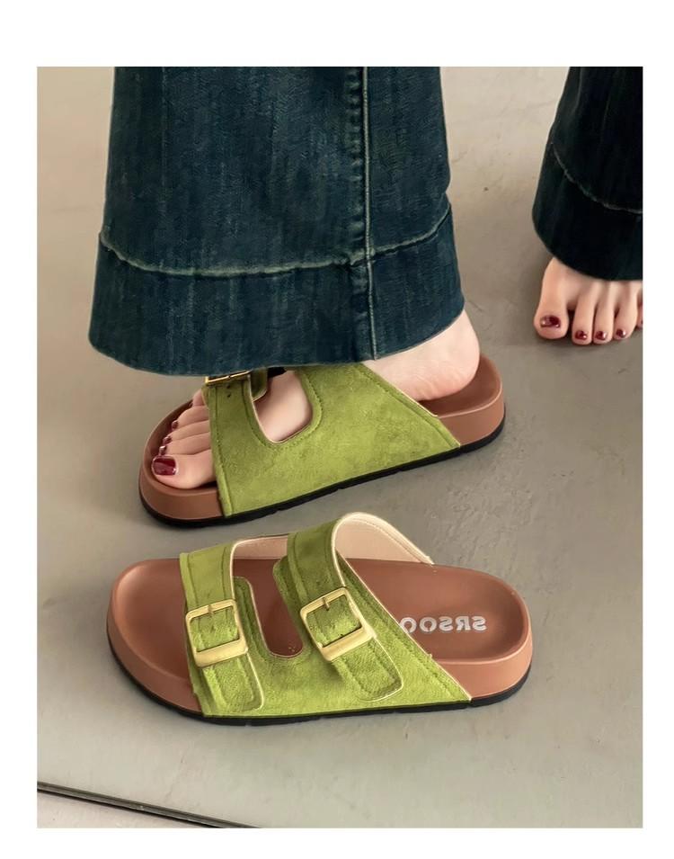 Pantuflas Casuales de Moda Verdes Birkendish para Mujer Verano 2025 Nuevo Suela Gruesa Antideslizantes para Playa