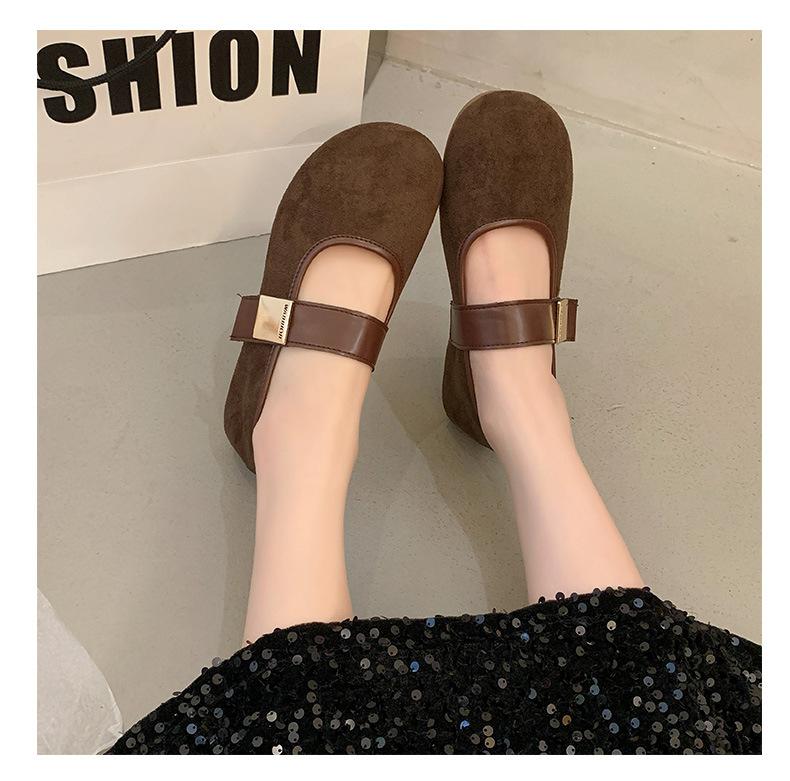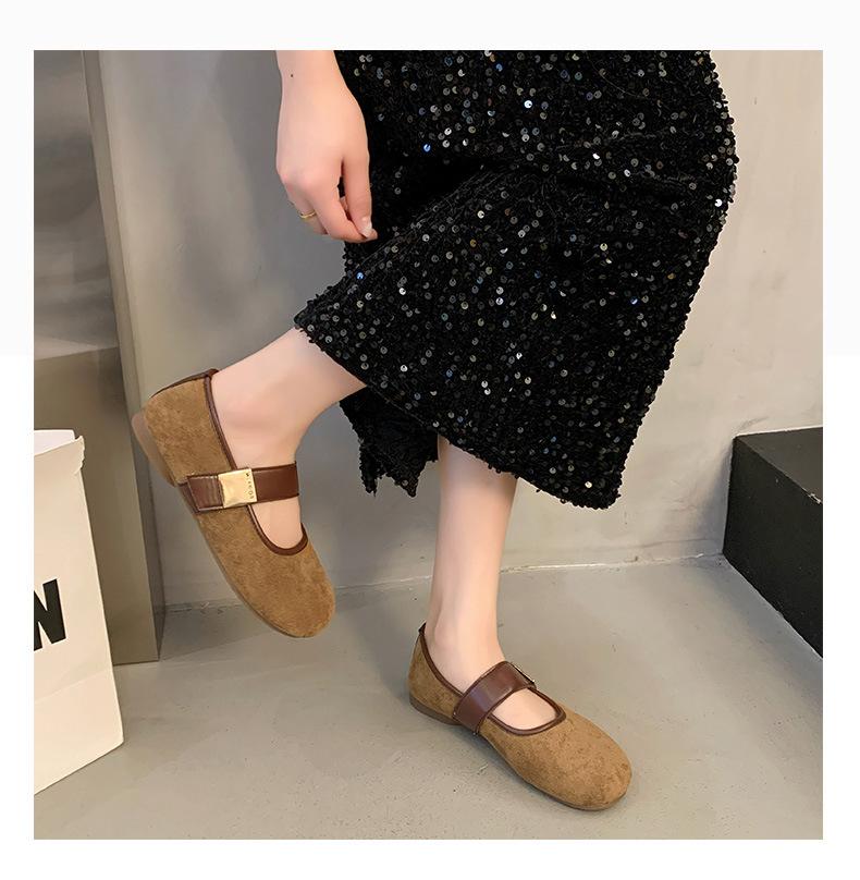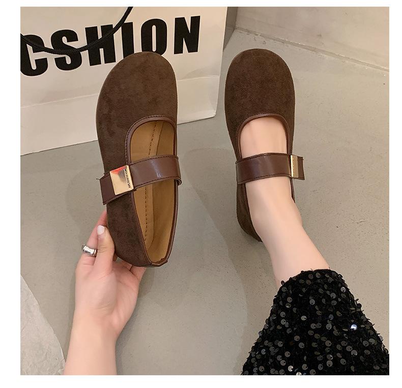 2025 Primavera Nuevos Zapatos Bajos Planos para Mujer Punta Redonda Transpirables Pu Superficie Suave Verano Decoración de Cuentas de Uva