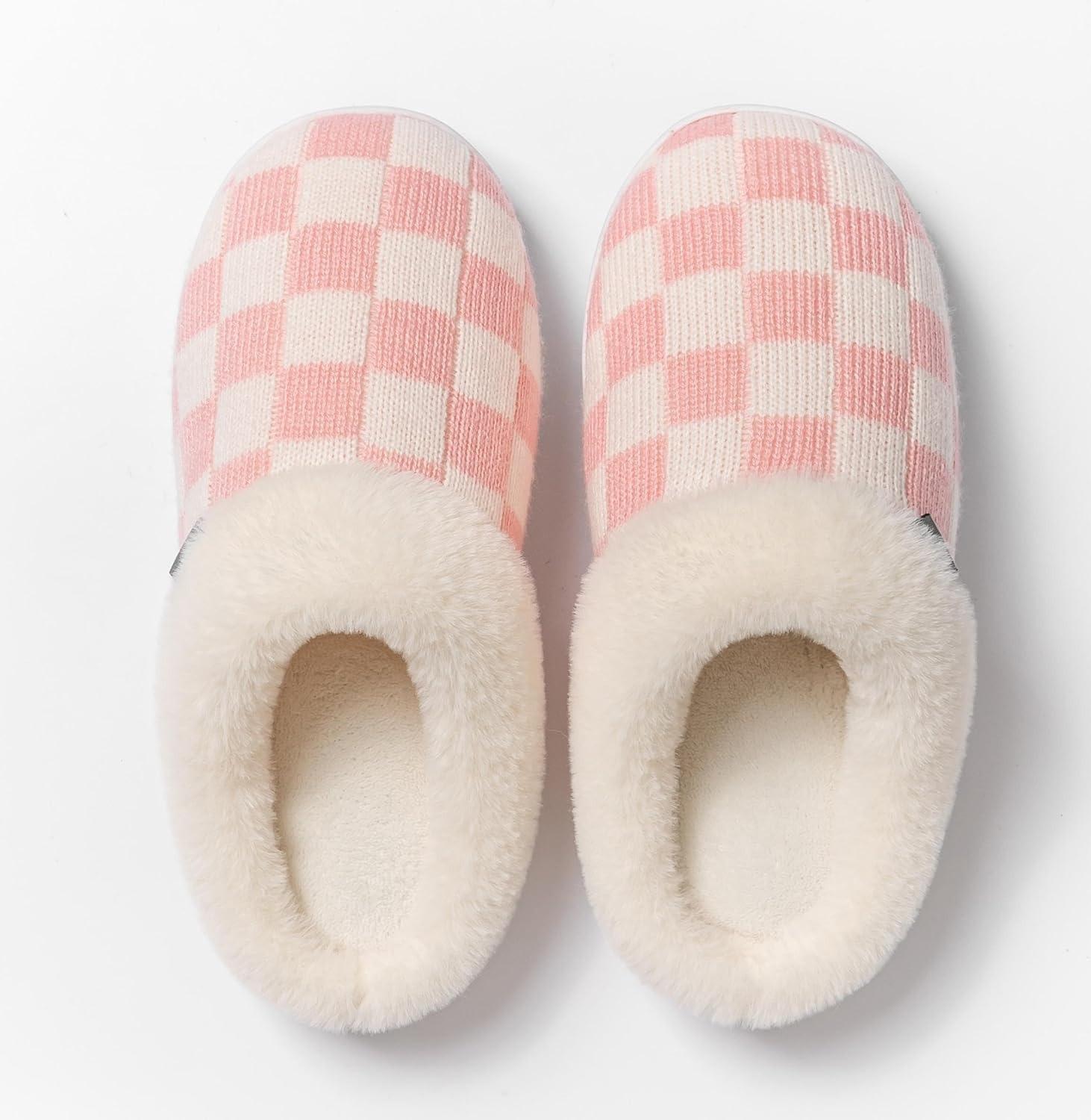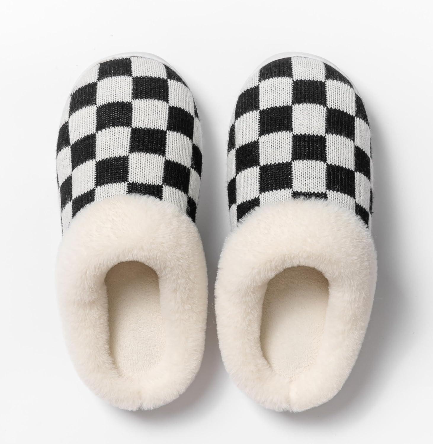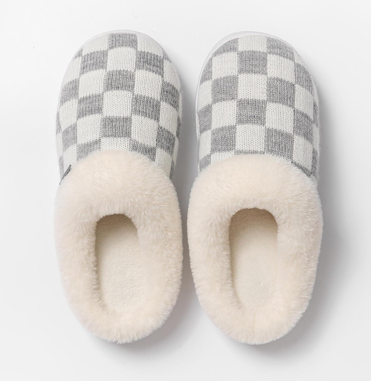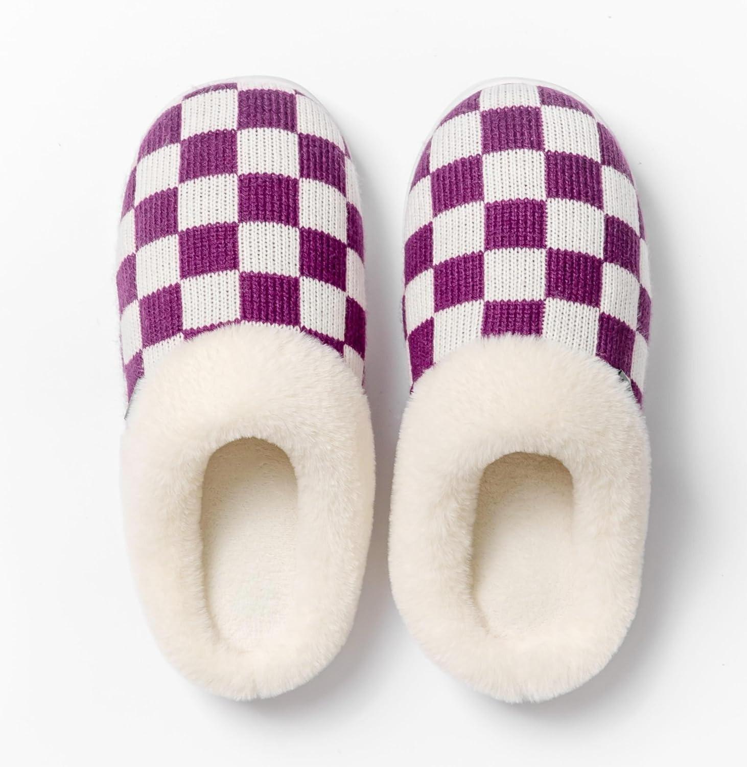 Pantuflas Peludas para Casa Personalizadas al Por Mayor Comercio Exterior Transfronterizo a Cuadros con Forro Polar Otoño e Invierno para Interior Invierno Antideslizantes de Algodón