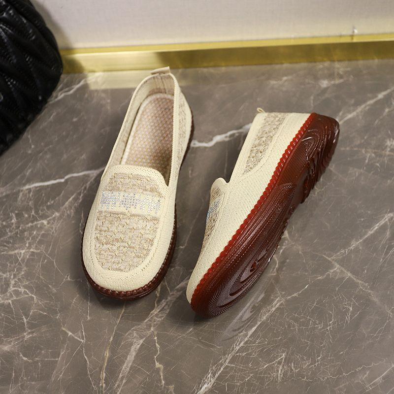 Zapatos de Tela de Pekín Antiguos Zapatos Casuales de Malla Transpirable para Mujer 2025 Nuevo Estilo Suela Suave Antideslizante Fondo Plano Slip-on Zapatos de Mamá