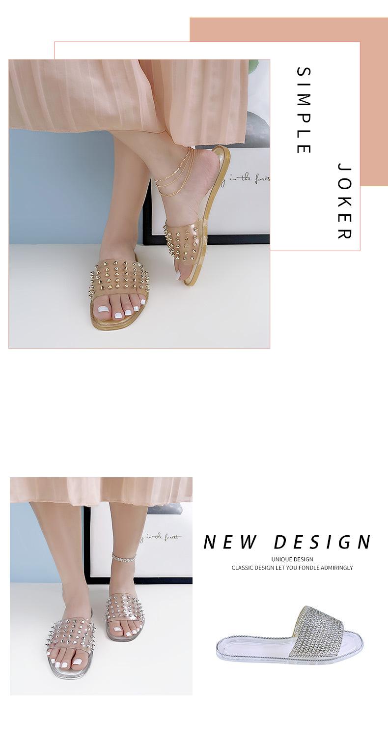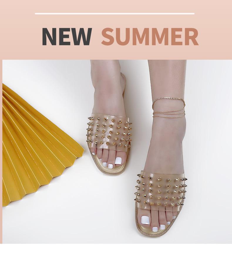 Temu Una Pieza Envío Directo Verano Nuevo Estilo Diseño de Remaches Zapatillas Modernas Simples para Mujer, Zapatillas Antideslizantes para Mujer para Uso en Exteriores