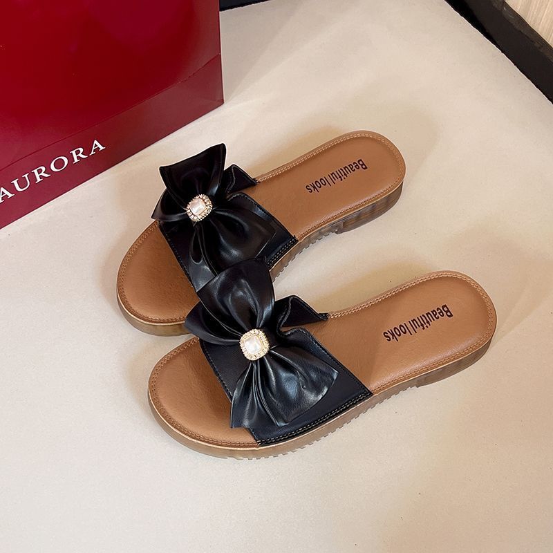 Zapatos Casuales de Lazo para Mujer 2025 Verano Nueva Moda Nicho Cómodos Versátiles Sandalias Planas y Pantuflas para Exterior Mujer