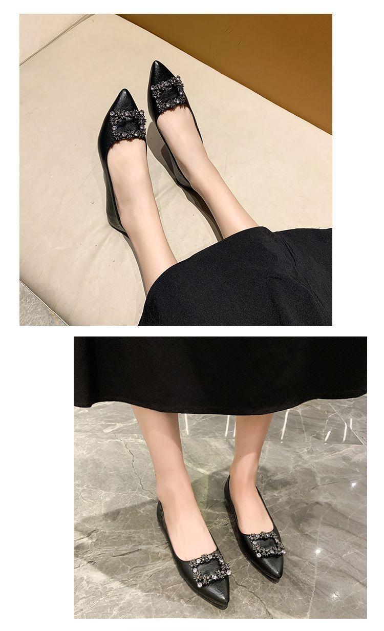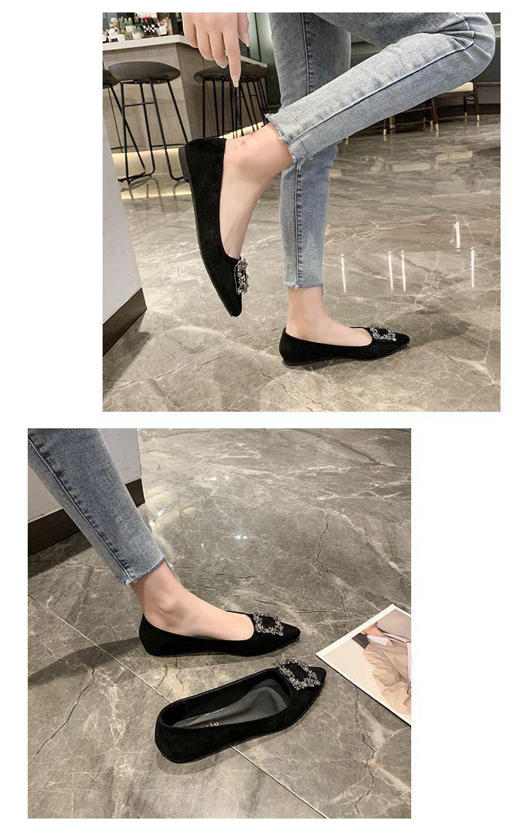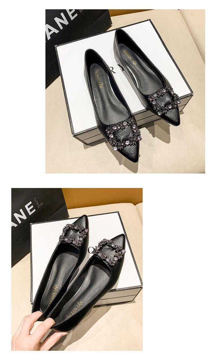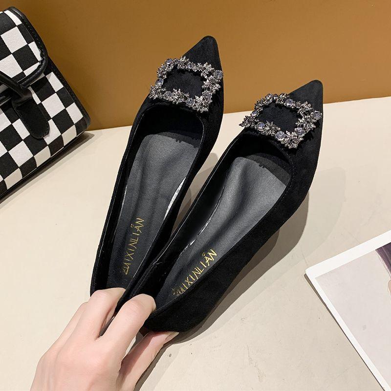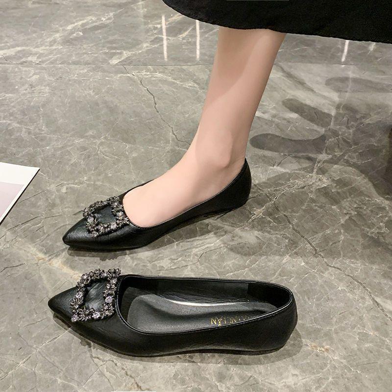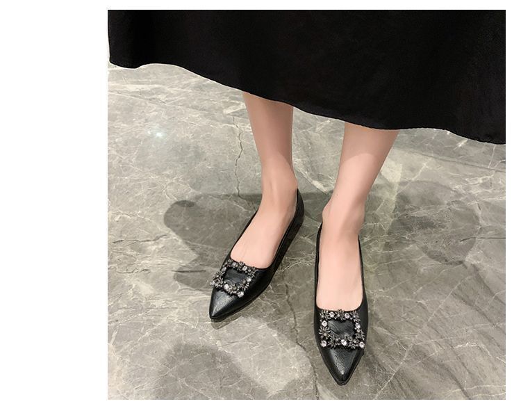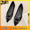 Zapatos franceses de suela blanda sin cordones para mujer primavera/verano 2025 nuevos zapatos individuales de punta con pedrería zapatos individuales versátiles de moda para mujer