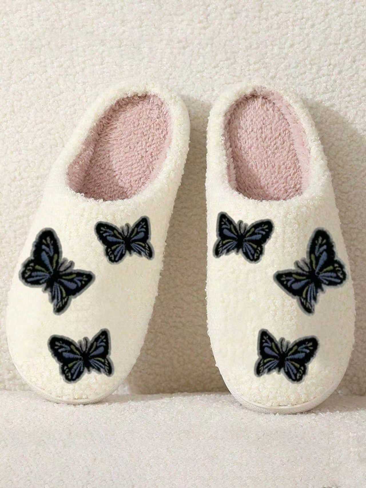 Pantuflas de Casa Estilo Coreano 2025 Bordado de Mariposas Zapatos de Felpa Super Ligeras Antideslizantes Silenciosas Suela Suave Pantuflas de Algodón Gruesas para Casa