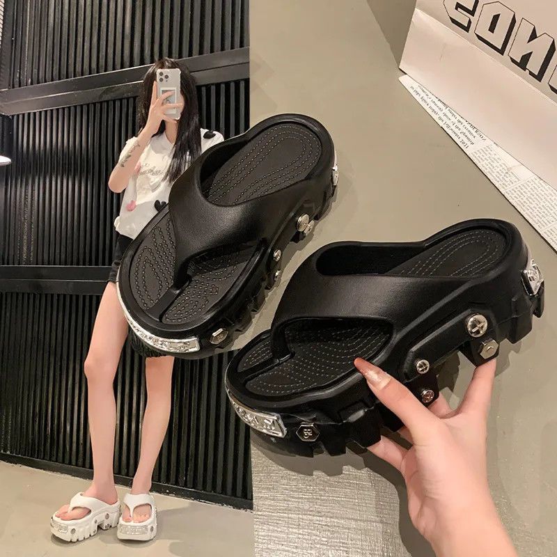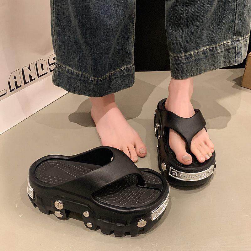 Sandalias de Tanga Versátiles de Moda 2025 Nuevo Verano Exterior Chanclas de Suela Pequeña y Gruesa Zapatillas Nicho para Mujer