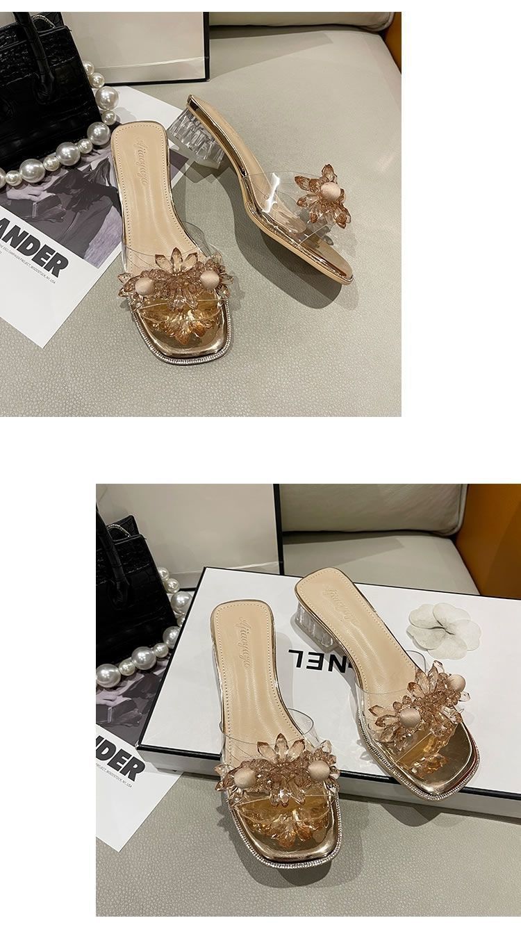 Compra Decoración de Flores de Cristal Zapatillas Versátiles de Una Tira Verano 2025 Nuevas Sandalias Estilo Hada Zapatillas de Mujer para Exterior al por mayor en Joom.pro