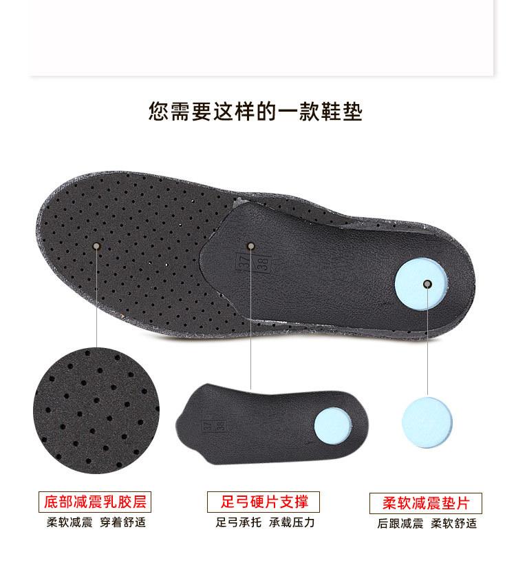 Nuevas plantillas de tres capas con media almohadilla invisible que mejoran la altura y son ajustables para hombres y mujeres, plantillas deportivas antideslizantes y que absorben los impactos.
