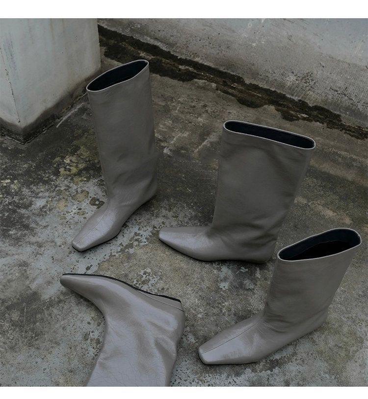 Compra Otoño/Invierno 2025 Nuevas Botas de Caña Alta hasta la Pantorrilla Media de Punta Cuadrada con Tacón de Cuña Sueltas Slip-On Sobre la Rodilla Botas Largas Botas de Caballero Mujer al por mayor en Joom.pro
