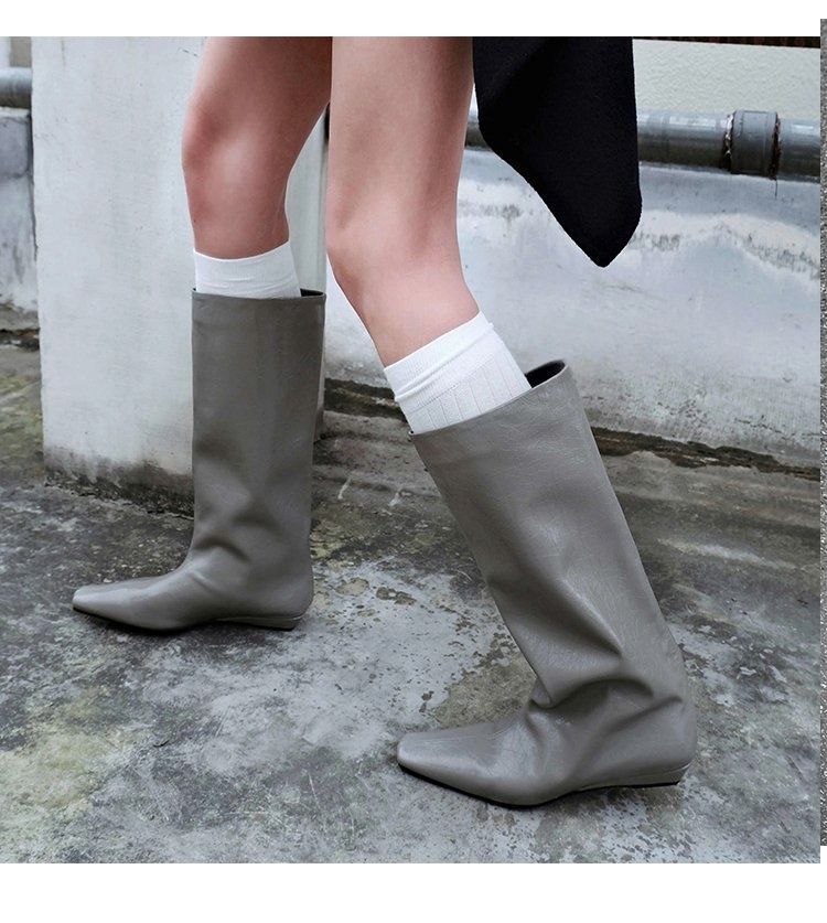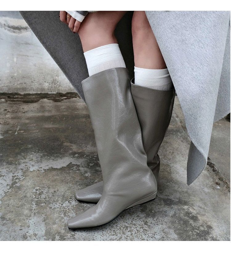 Otoño/Invierno 2025 Nuevas Botas de Caña Alta hasta la Pantorrilla Media de Punta Cuadrada con Tacón de Cuña Sueltas Slip-On Sobre la Rodilla Botas Largas Botas de Caballero Mujer