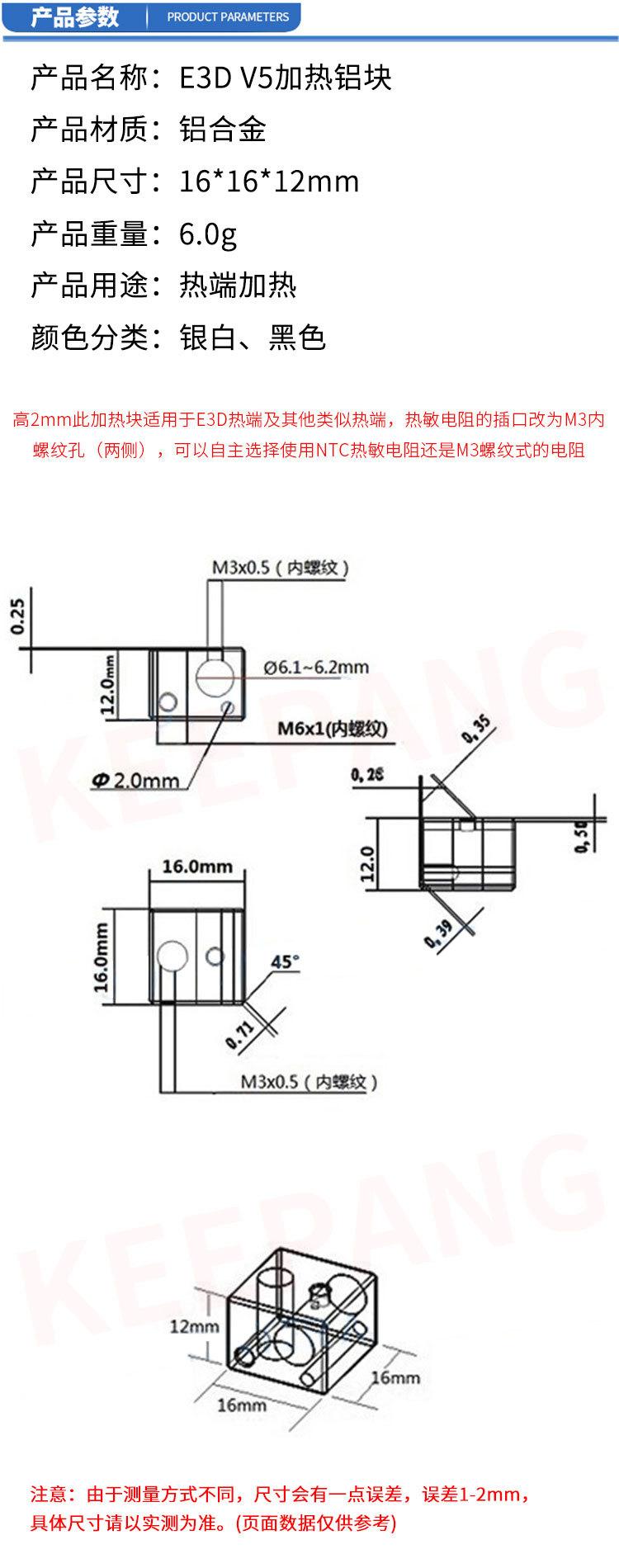 Accesorios para Impresora 3D Bloque Calentador E3D Metálico Tratamiento de Oxidación de Aleación de Aluminio 16X16X12