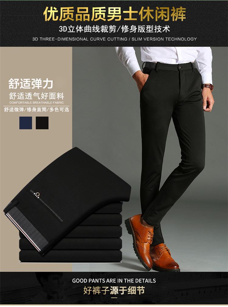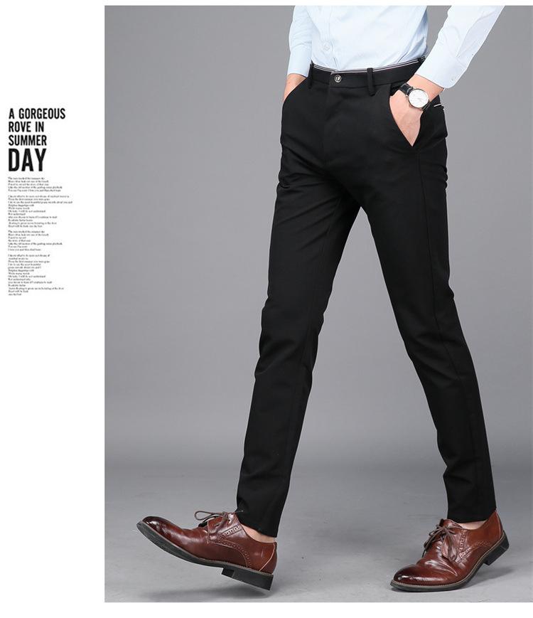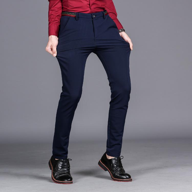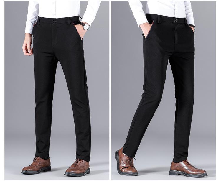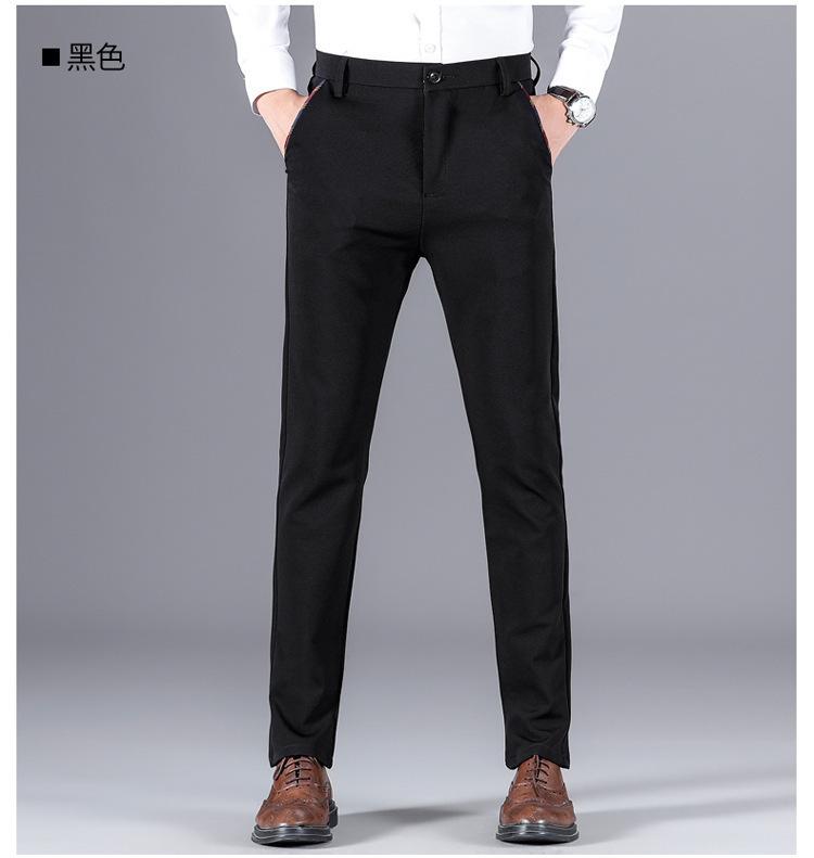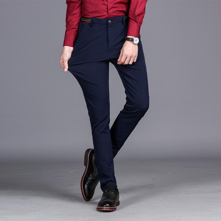 Compra Pantalones de Primavera Nueva Llegada para Hombre Estilo Coreano Moderno Cuatro Estaciones Negro Pantalón Pequeño Elástico Ajustado Pantalones Casuales al por mayor en Joom.pro