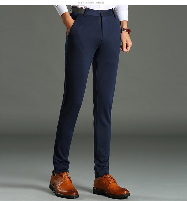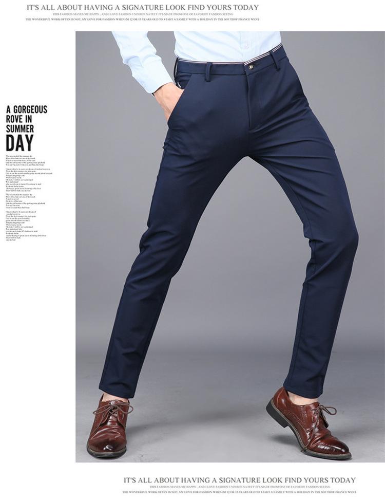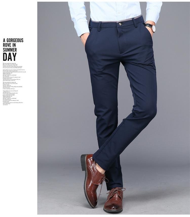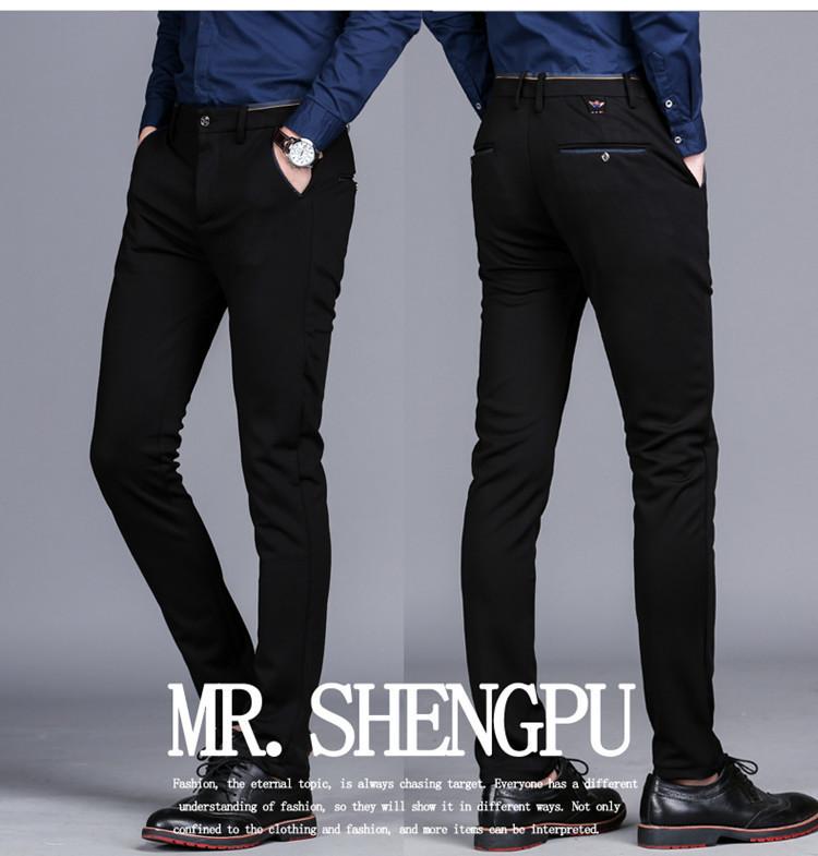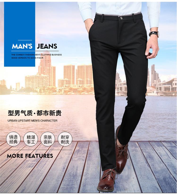 Compra Pantalones de Primavera Nueva Llegada para Hombre Estilo Coreano Moderno Cuatro Estaciones Negro Pantalón Pequeño Elástico Ajustado Pantalones Casuales al por mayor en Joom.pro