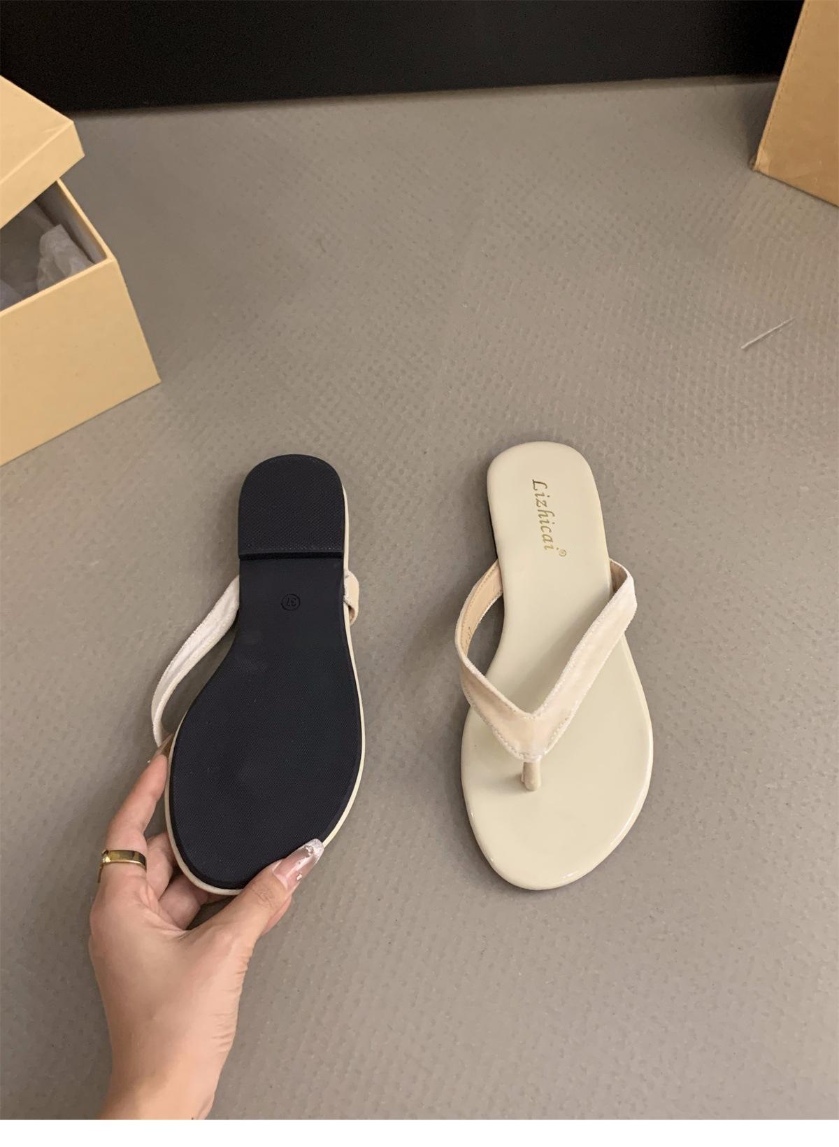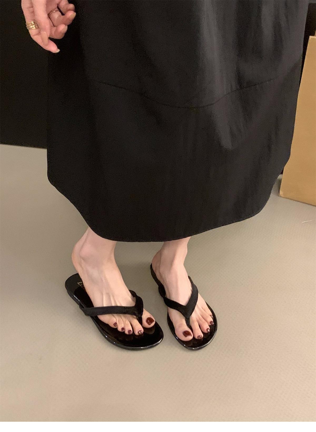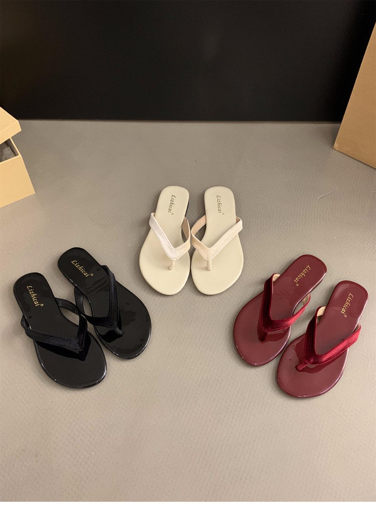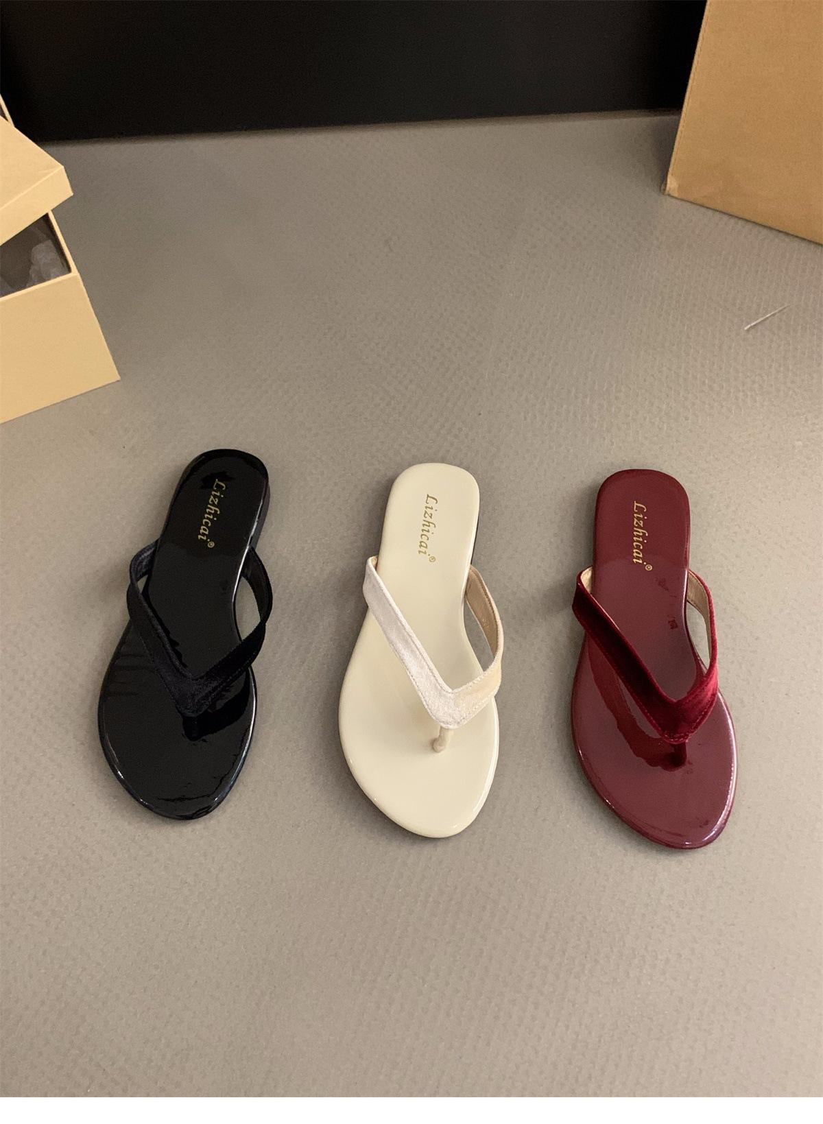Sandalias planas rojas estilo francés pequeñas Zapatos de mujer Ropa exterior 2025 Nuevo estilo Verano Casual Suela suave Chanclas de clip