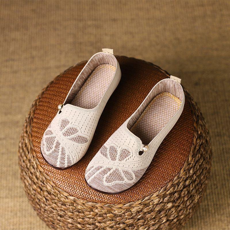 Zapatos de Tela Transpirable de Malla de Beijing Antiguos para Mujer, Planos, Antideslizantes, Versátiles, Slip-On, Zapatos Individuales para Mamá, Verano Otoño 2025 Nuevo