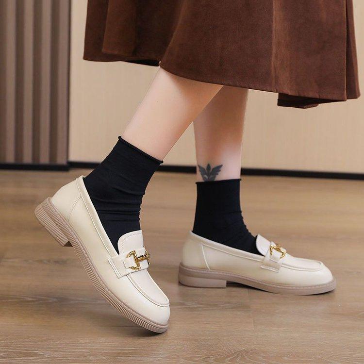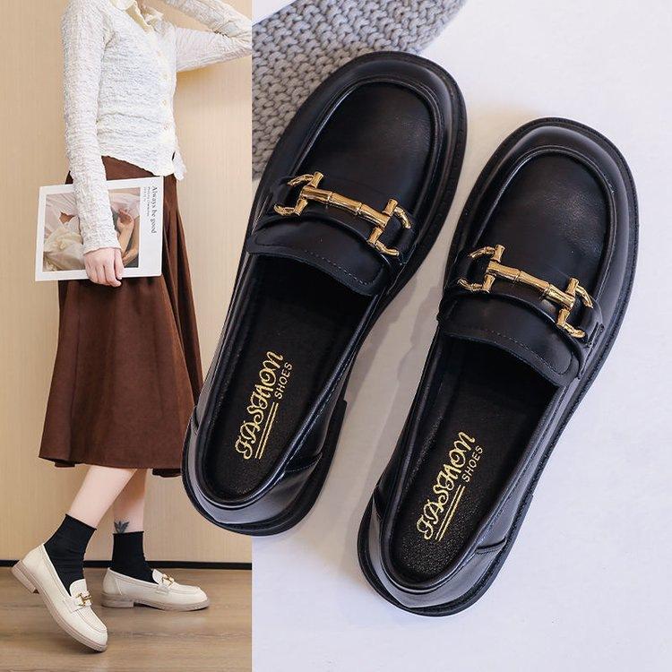 Compra Mocasines de Cuero Suave Mujer 2025 Otoño Nuevos Zapatos de Mamá Suela Gruesa Slip-On Zapatos Individuales Versátil Estilo Británico Zapatos de Cuero Pequeños al por mayor en Joom.pro
