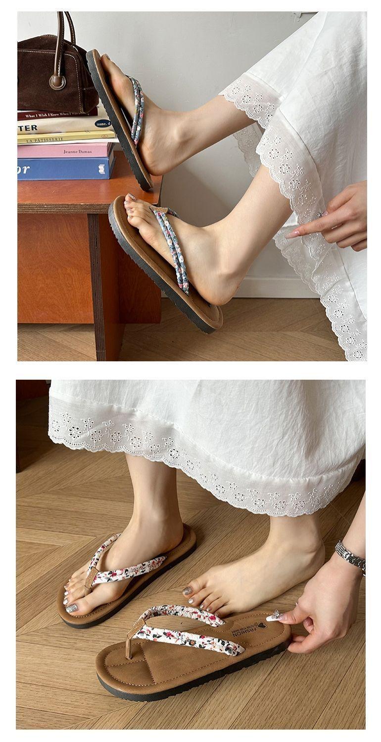 Pantuflas planas de suela blanda con una tira, nuevo estilo chino, pantuflas frescas para exteriores, chanclas de moda, ropa de exterior para mujer, nuevo verano y otoño 2025