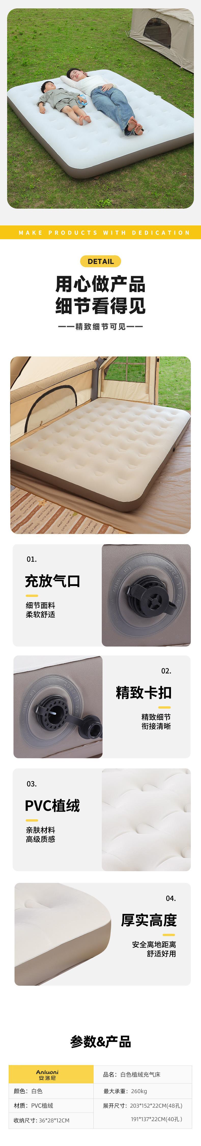 Beige 191*137*22cm with rechargeable pump