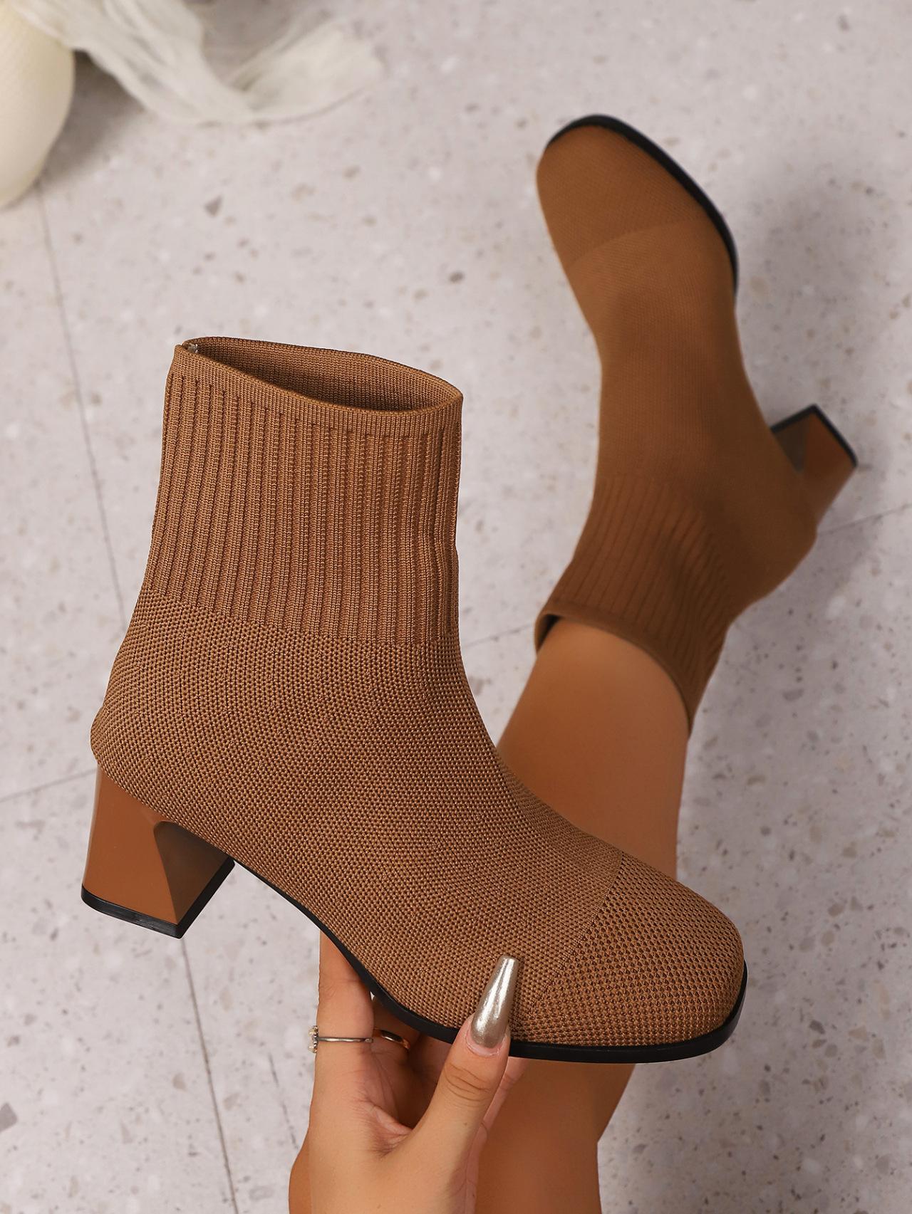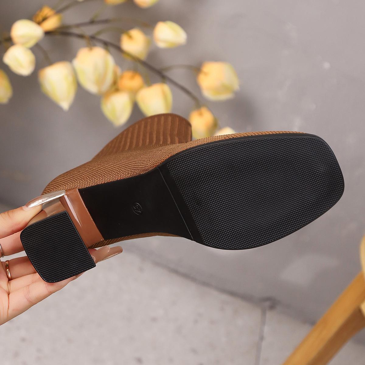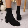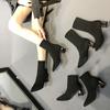 Botines calcetín mujer tacón grueso botines al tobillo 2025 otoño e invierno nuevos estilo británico tacón grueso tacón alto botas Martin media pantorrilla botas de punto comercio exterior