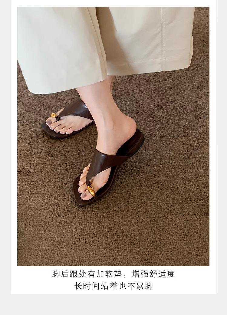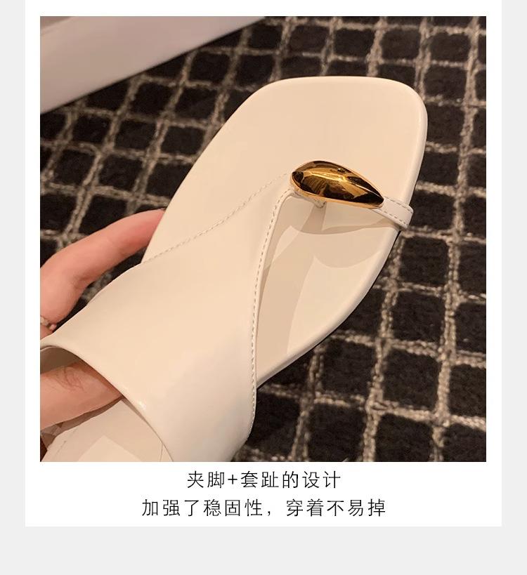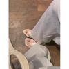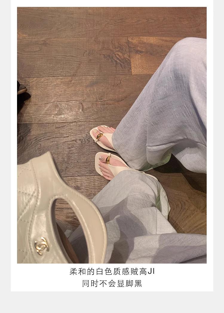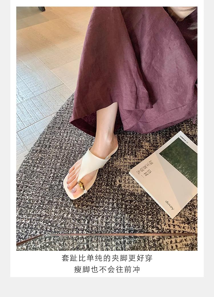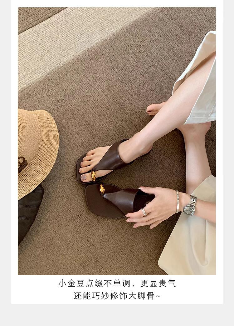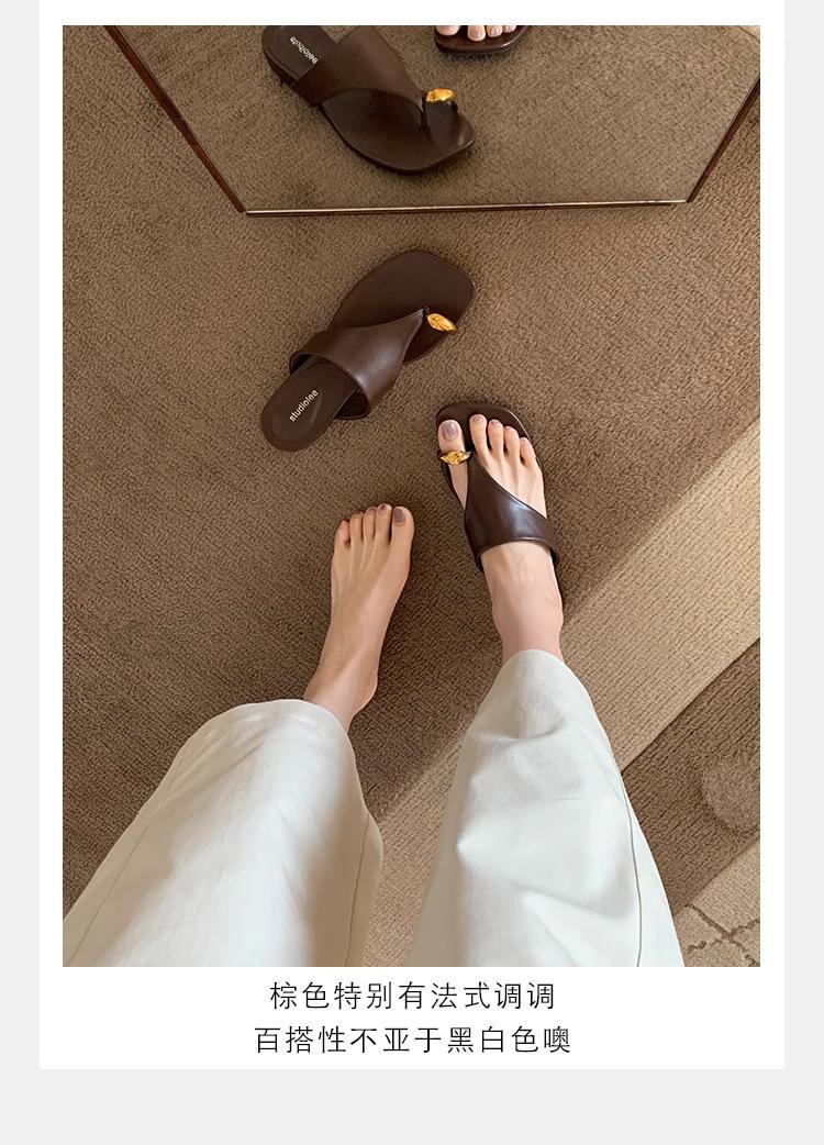 [Gran Stock] Flats Metálicos Franceses Slip-On Estilo Shan Yichun de Suela Plana para Exterior Sandalias de Espiga con Puntera Abierta para Mujer Verano
