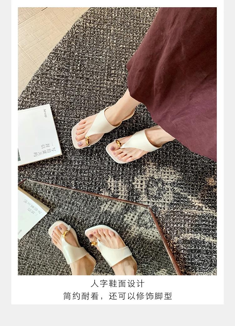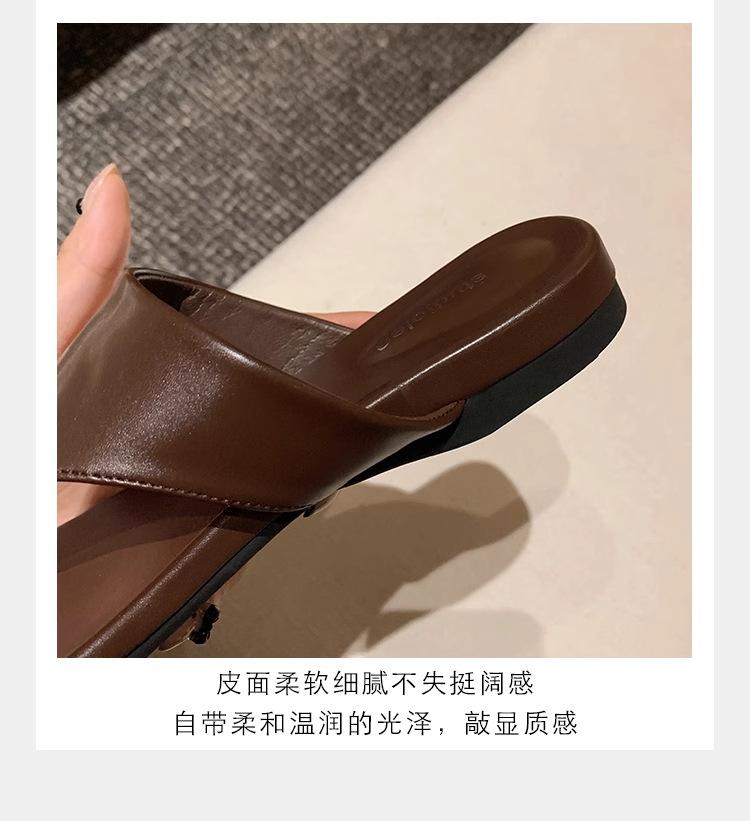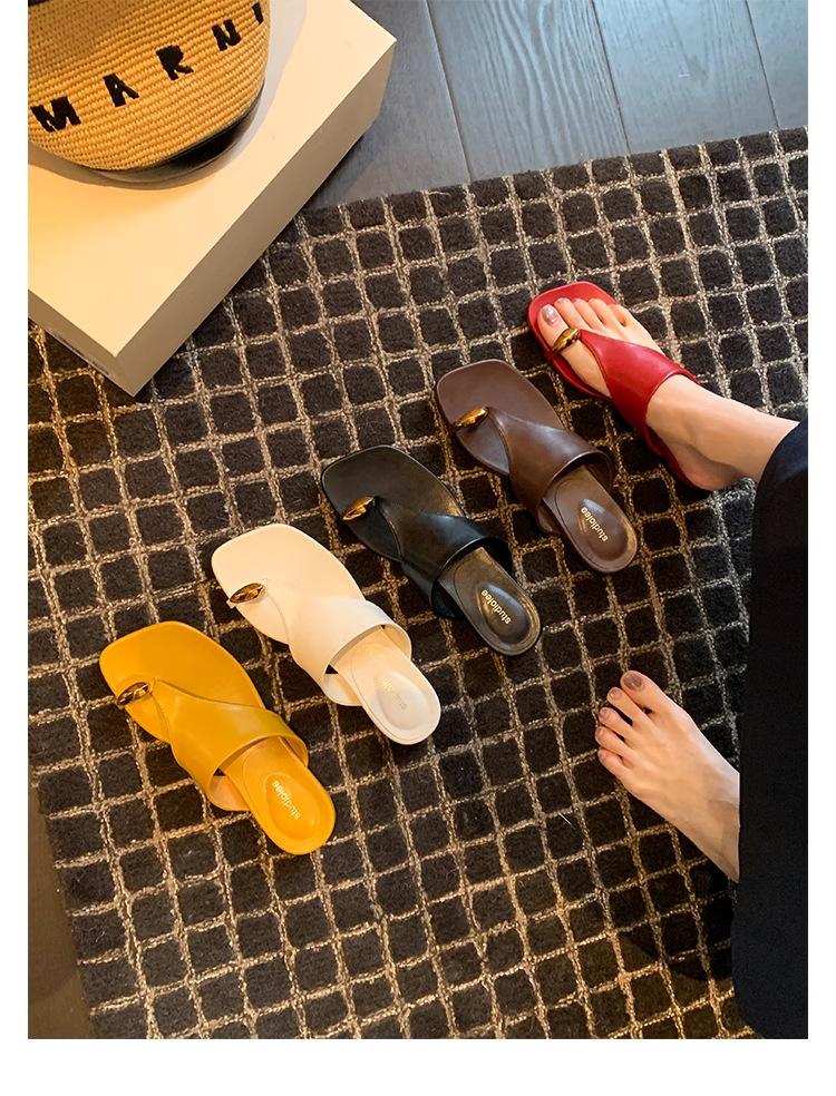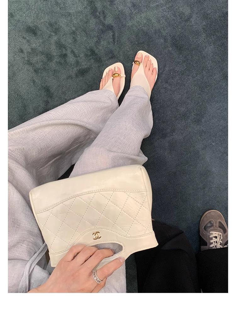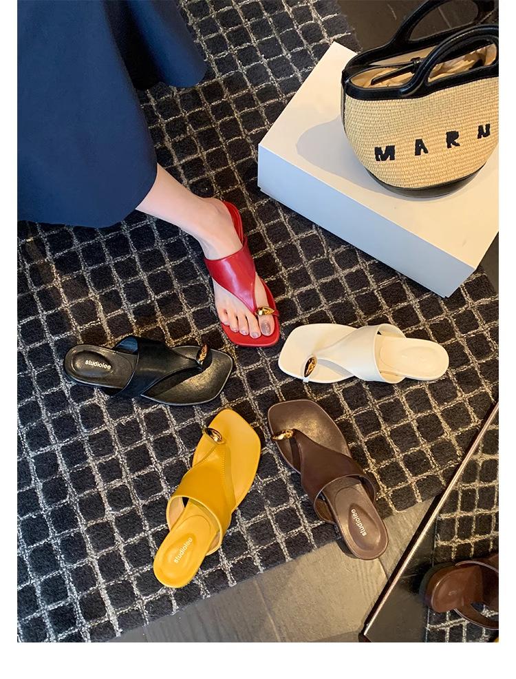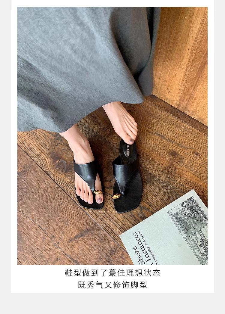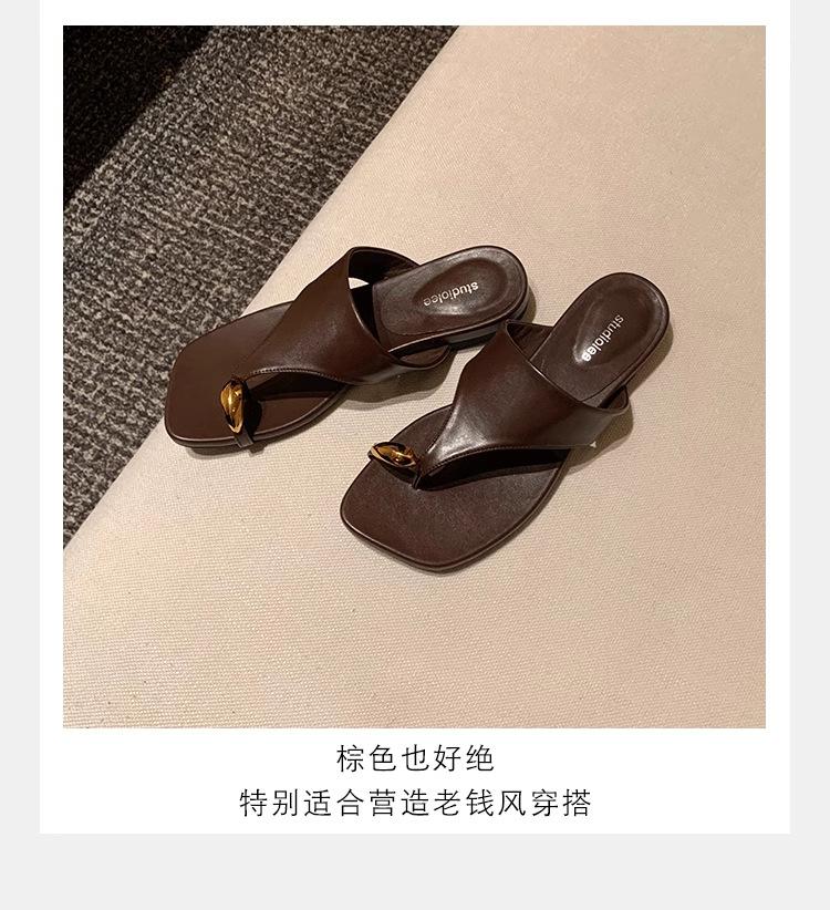 [Gran Stock] Flats Metálicos Franceses Slip-On Estilo Shan Yichun de Suela Plana para Exterior Sandalias de Espiga con Puntera Abierta para Mujer Verano