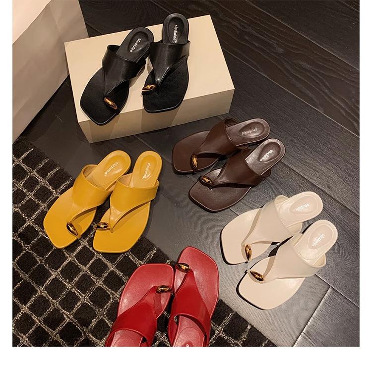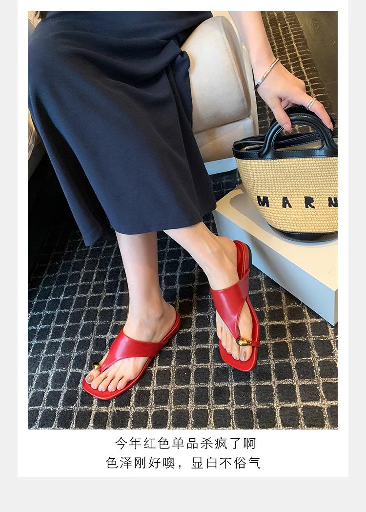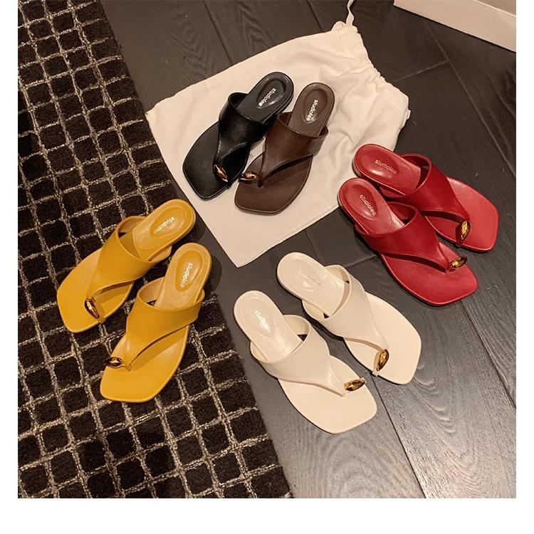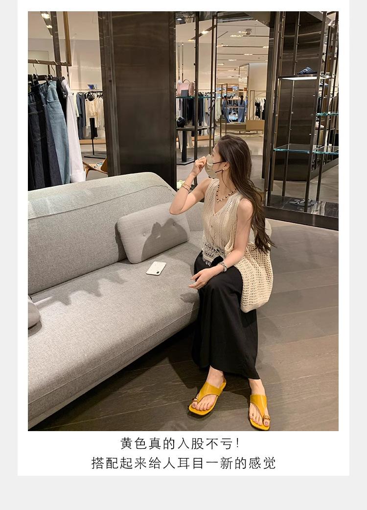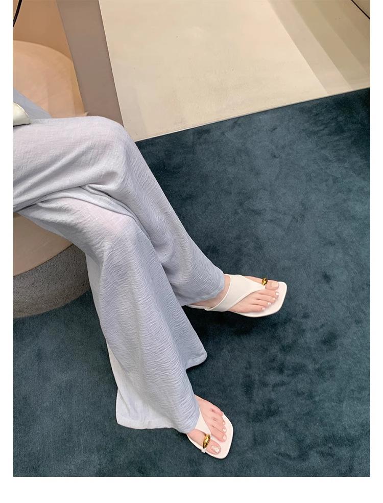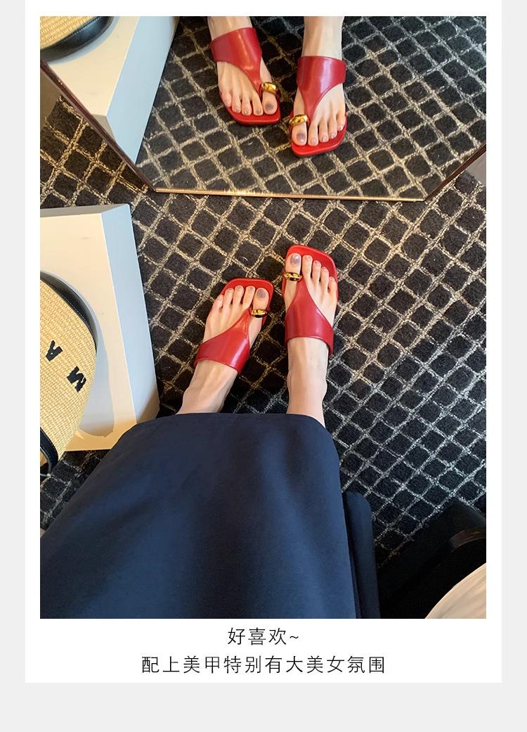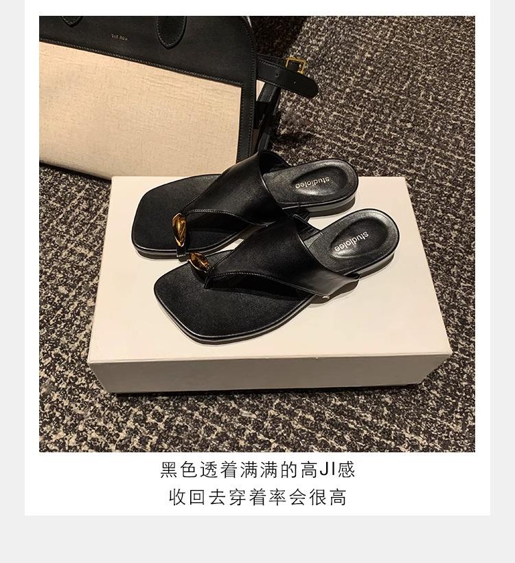 [Gran Stock] Flats Metálicos Franceses Slip-On Estilo Shan Yichun de Suela Plana para Exterior Sandalias de Espiga con Puntera Abierta para Mujer Verano