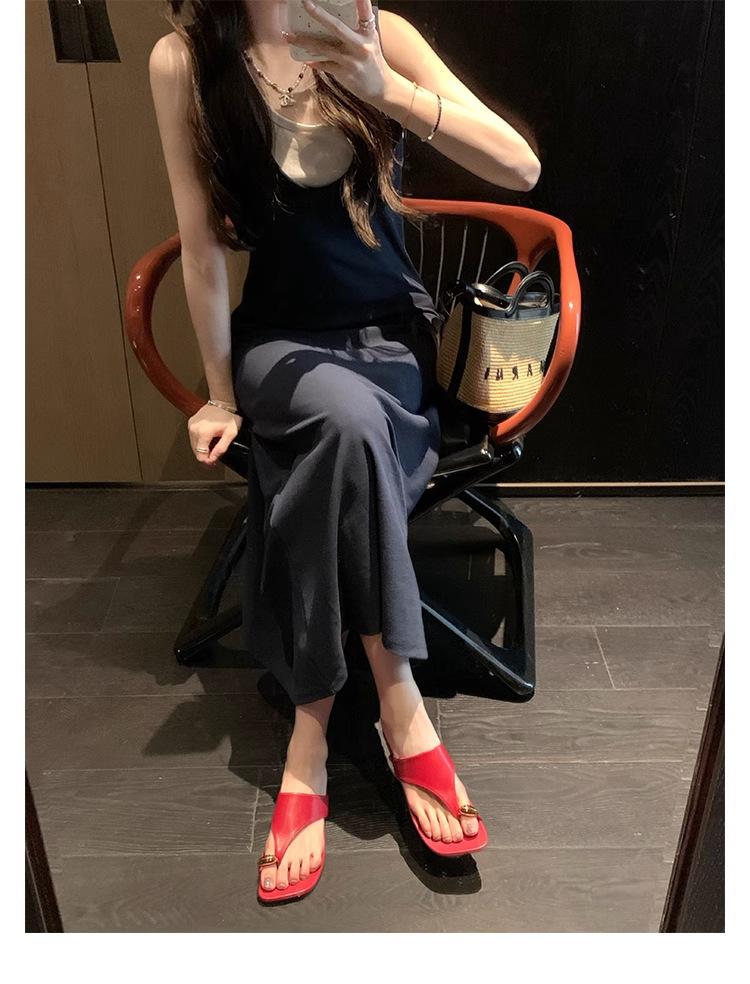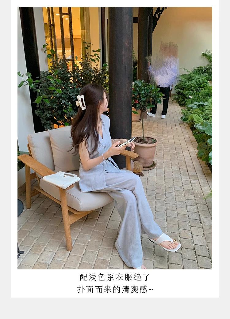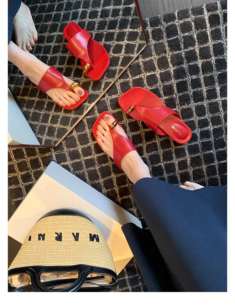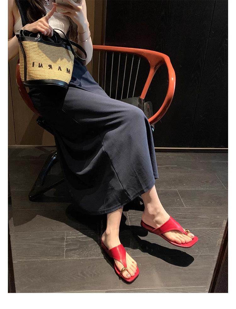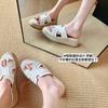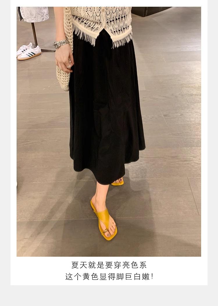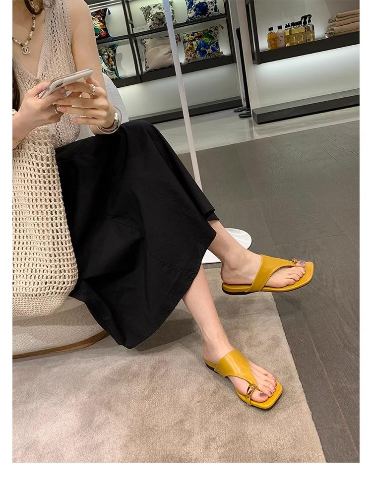 [Gran Stock] Flats Metálicos Franceses Slip-On Estilo Shan Yichun de Suela Plana para Exterior Sandalias de Espiga con Puntera Abierta para Mujer Verano