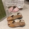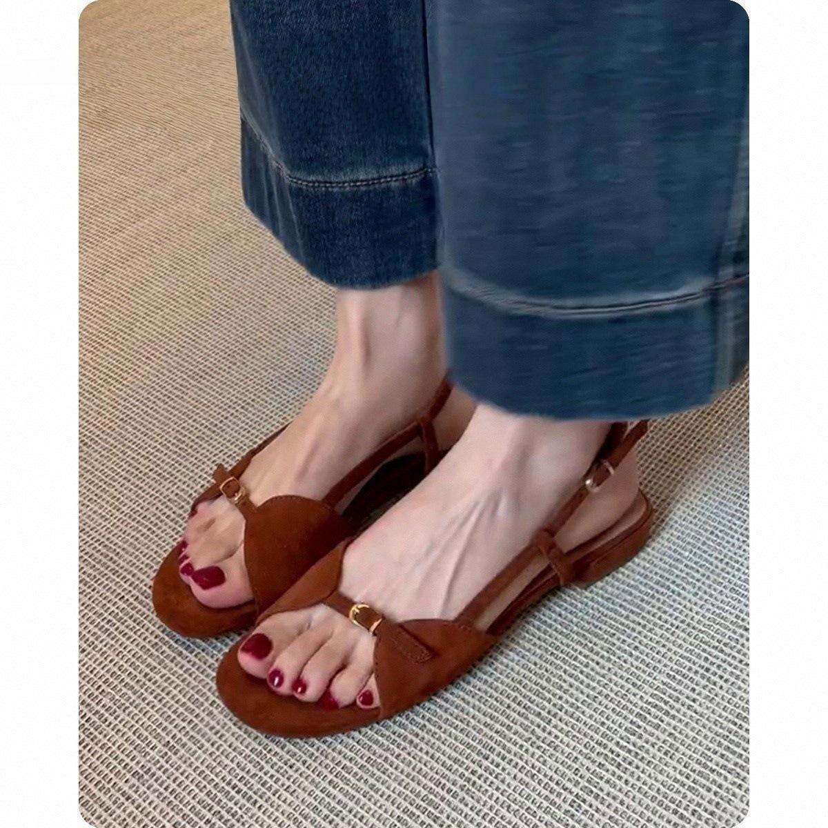 Sandalias planas retro francesas para mujer verano estilo hada 2025 nuevas versátiles con vestidos hebilla de una tira zapatos romanos